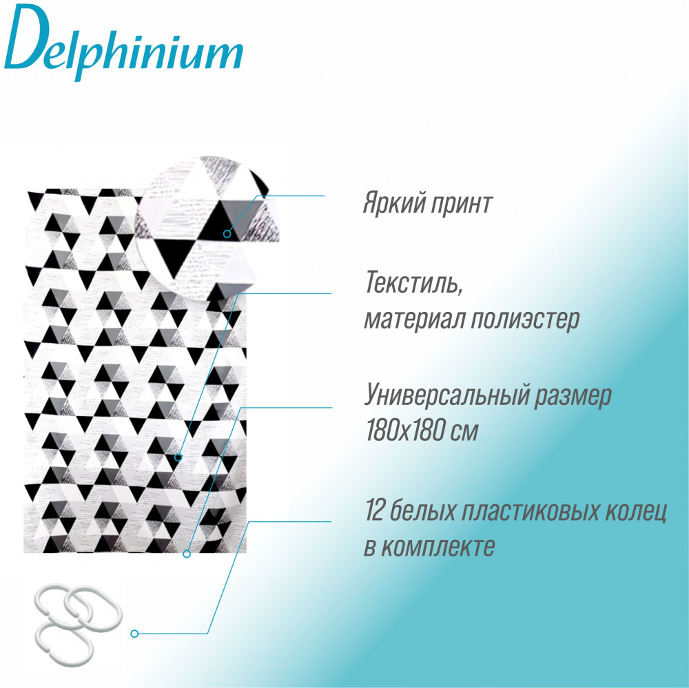 Delphinium Штора для ванной «Графика»В данный момент этот товар отсутствует в продаже. Возможно, у нас найдется аналогичный или похожий товар здесь. Штора для ванной — незаменимый и практичный аксессуар современной ванной. Шторы предотвращают попадание брызг воды, мыльной пены на пол и стены ванной комнаты. Штора для ванной имеет металлические люверсы (12шт), которые защищают шторы от случайного разрыва в местах навешивания. В комплекте идут 12 пластиковых колец. Штора выполнена из водонепроницаемого материала — полиэстер. Он плотный, прочный, обладает водоотталкивающими свойствами, идеально подойдет для ванны, рисунок не выцветает и не тускнеет. |