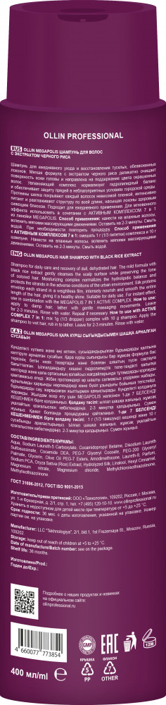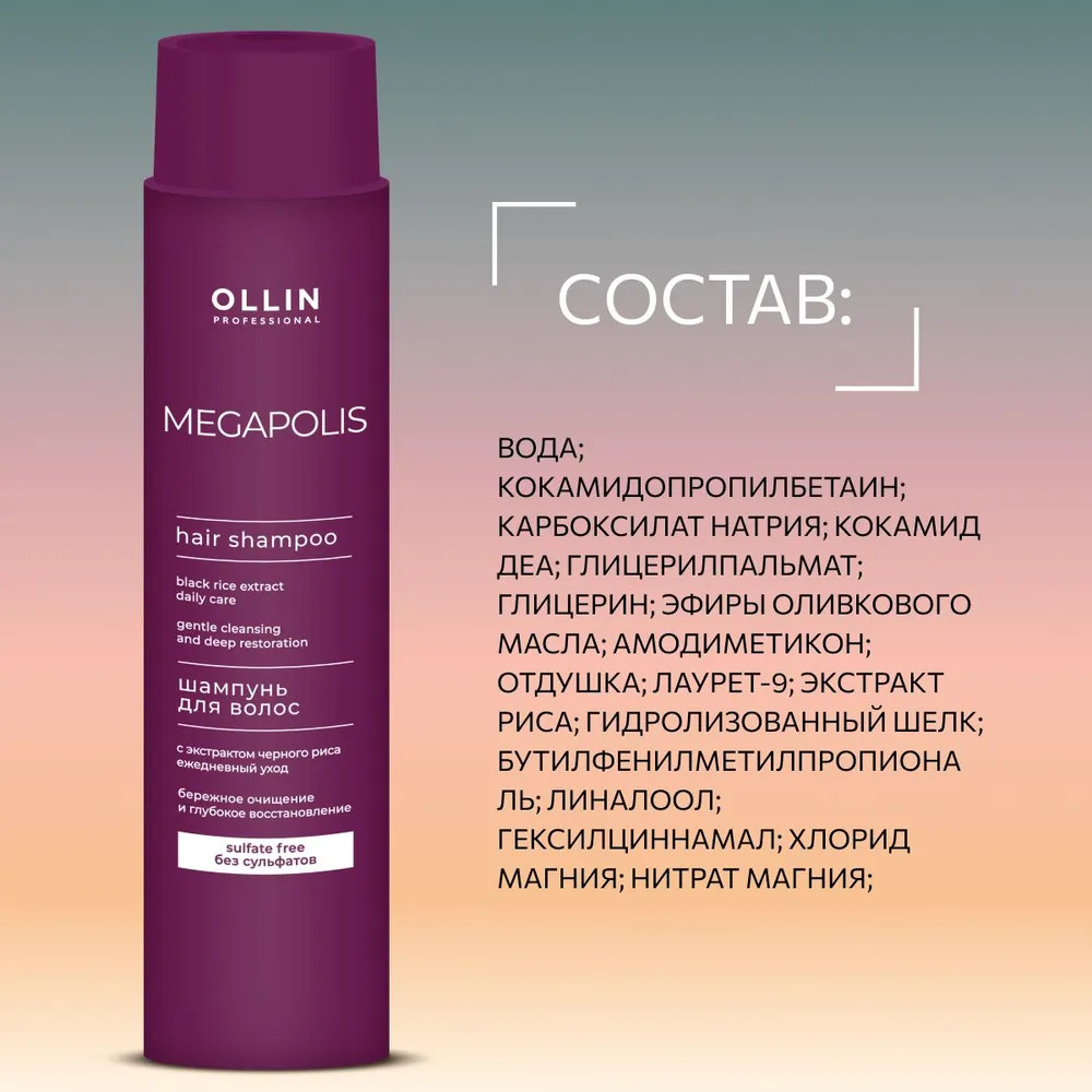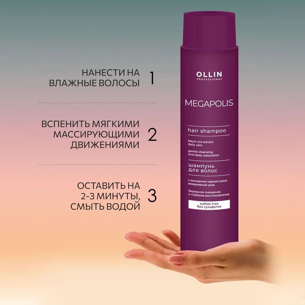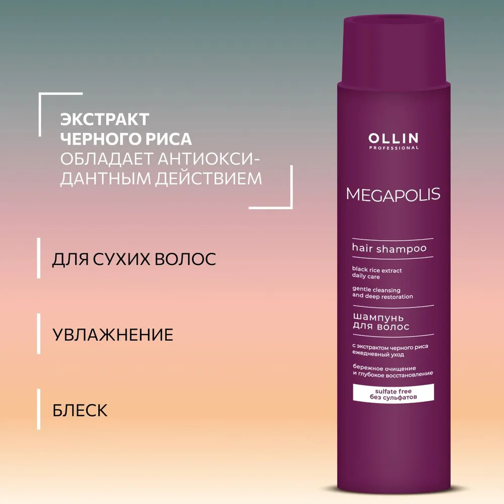 Ollin Professional Шампунь для волос с экстрактом черного риса «Бережное очищение и глубокое восстановление»