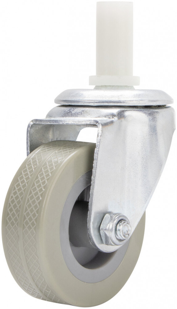 Данные колёса предназначены для установки на тележки, используемые в помещениях. Обод колеса изготовлен из полипропилена серого цвета. Особенностью таких колес является шумопоглощающий эффект, малая вибрация и отсутствие следов на поверхности пола
