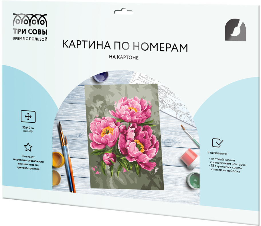 Картина по номерам на картоне бренда «ТРИ СОВЫ» станет увлекательным хобби, которое будет интересно как детям, так и взрослым.