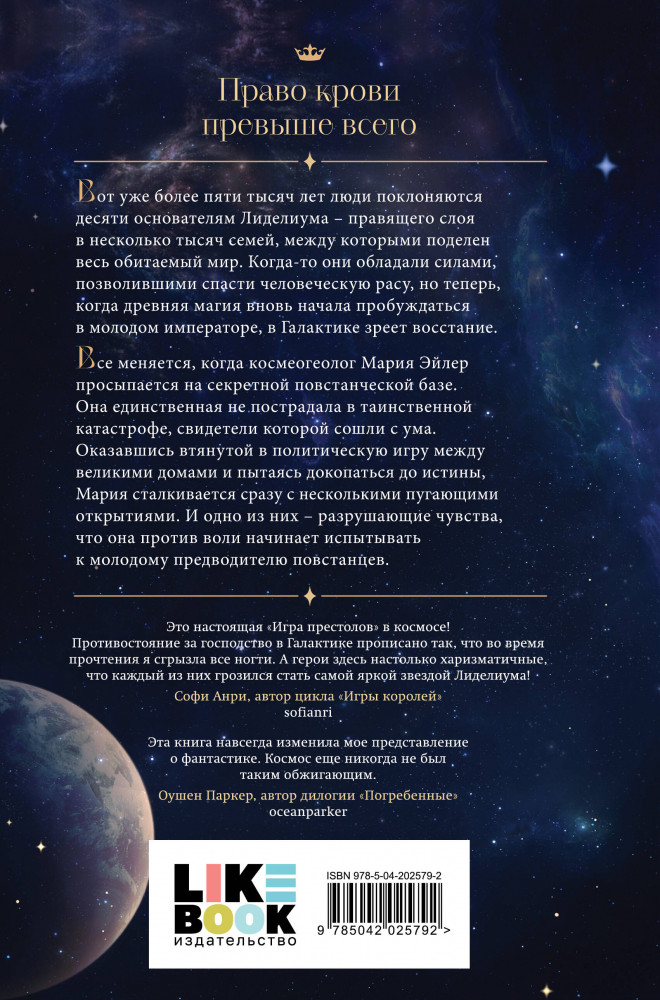 💳 Оплатить за товар можно при получении 🇰🇿 Есть бесплатная доставка по Казахстану от 1 дня 🎁 Копите бонусы с каждой покупки Серия: Young Adult. Все звезды в нас самих. Романтическая фантастика от Рии Райд Умопомрачительный ромфант в декорациях аристократии далекого космоса, политические интриги, не уступающие «Игре престолов», горячая любовь, предназначение и борьба за власть. Шикарный слог автора, яркие вклейки, безупречное художественное оформление никого не оставят равнодушным. Для фанатов «Звездных войн», «Дюны», «Игры престолов». |