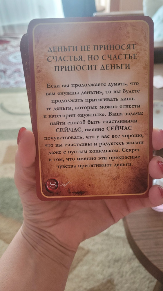💳 Оплатить за товар можно при получении 🇰🇿 Есть бесплатная доставка по Казахстану от 1 дня 🎁 Копите бонусы с каждой покупки Серия: Сенсация 65 карт с завораживающим золотым обрезом и цитатами из книги автора мегабестселлера «Тайна» помогут исполнить ваши желания. Роскошный короб, инкрустированный тиснением с матовым золотом, цветная брошюра-инструкция с вдохновляющими практиками — в комплекте. Дорого, эксклюзивно, волшебно! Окружающий мир полон всевозможных благ и удовольствий, и каждый из нас может лично убедиться в этом. С помощью силы своего разума вы можете достичь всего, что угодно! Главная задача этих карт — помочь вам применять на практике знания, которые помогут приблизить день и час исполнения ваших заветных желаний. Закон Притяжения, сакральную силу которого открыла Ронда Берн, действует неизменно. И он поможет вам сегодня получить именно то послание, которое откроет перед вами нужную дверь. |