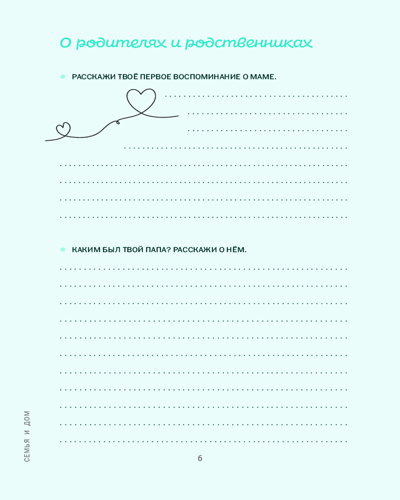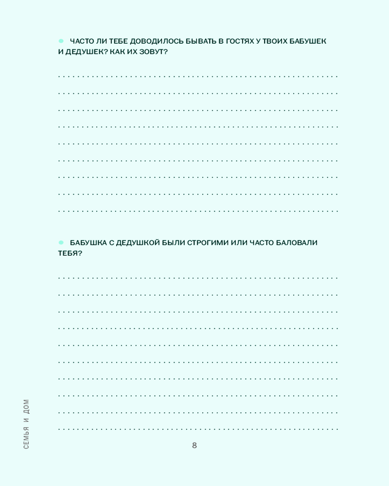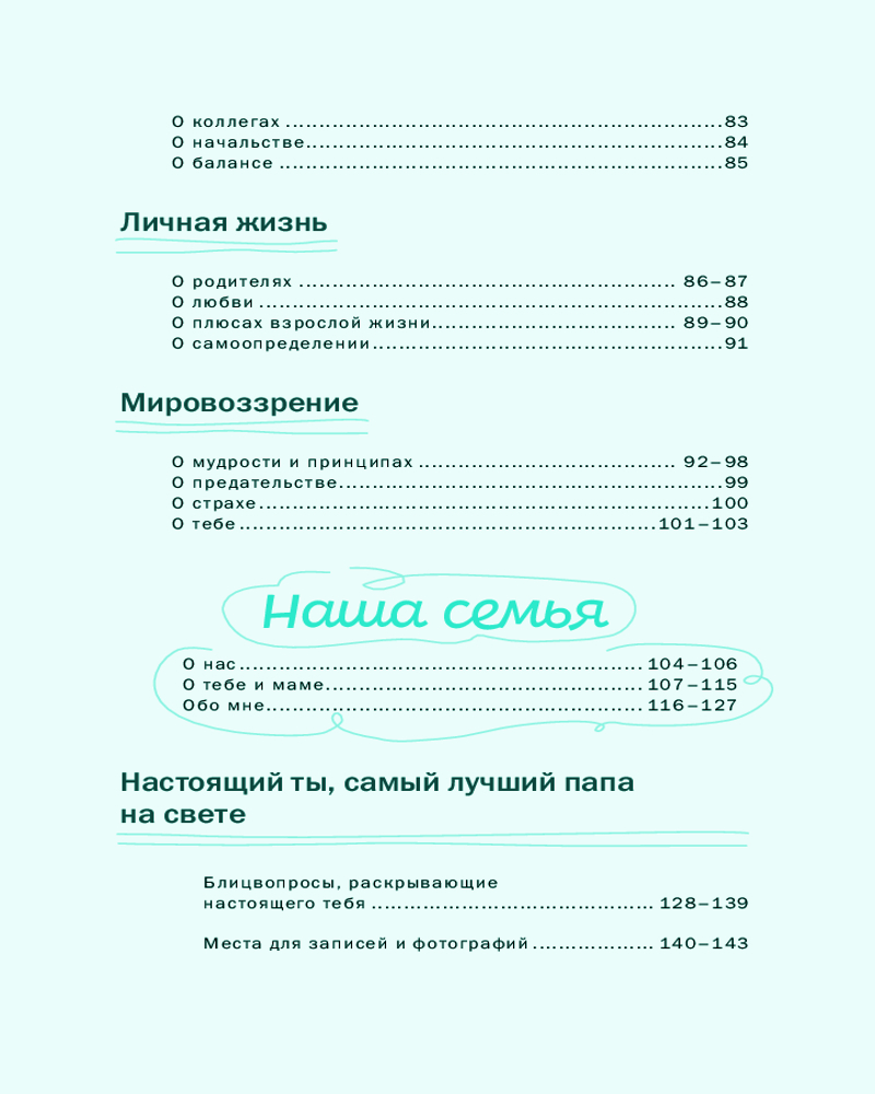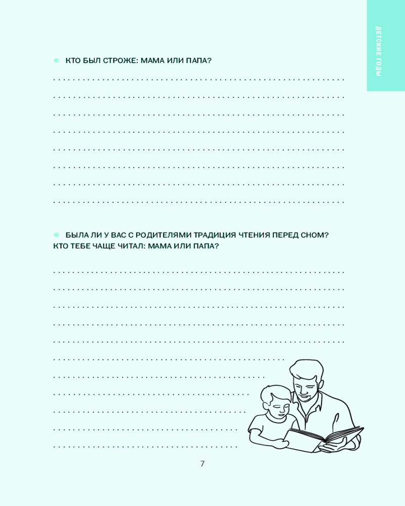 Более 310 тем для искренних и душевных бесед с папой! Эта книга — не просто семейный альбом или сборник вопросов. Эта книга — ваше признание в любви своему папе. Заполните ее вместе с ним или запишите ответы самостоятельно с его слов и создайте семейное древо. Если хотите, можете задавать вопросы последовательно, ведь все они расположены хронологически — от детства к нынешнему возрасту. Но на самом деле никаких правил нет! Можете начать диалог с любого места и дальше ориентироваться на ход беседы, переходя от раздела к разделу в зависимости от приходящих воспоминаний. Пусть эта новая традиция станет шагом к узнаванию уникальной истории вашей семьи.