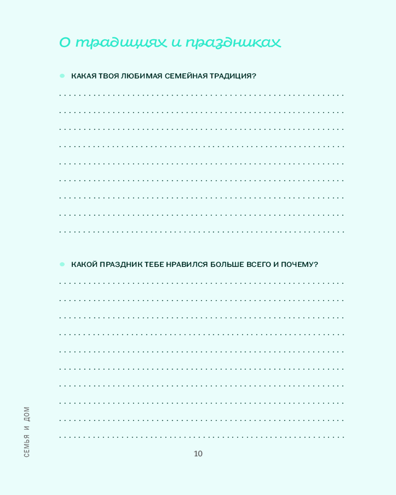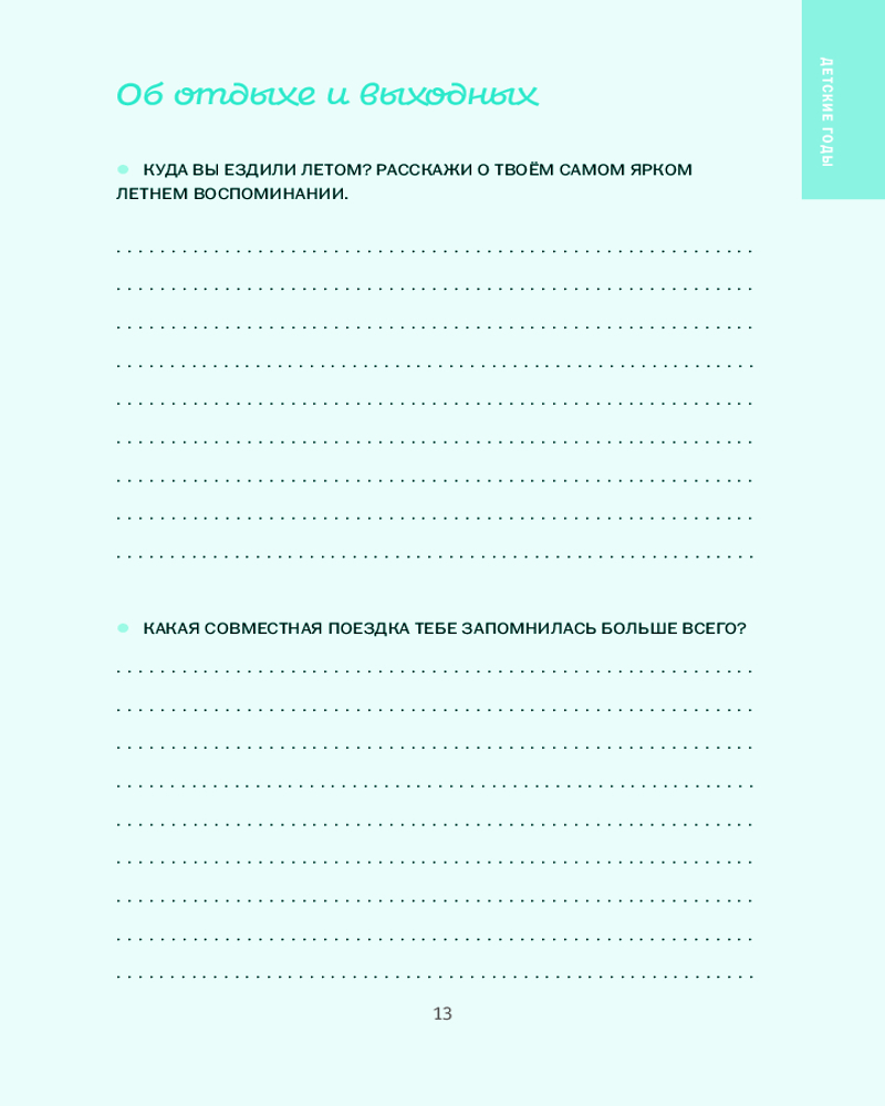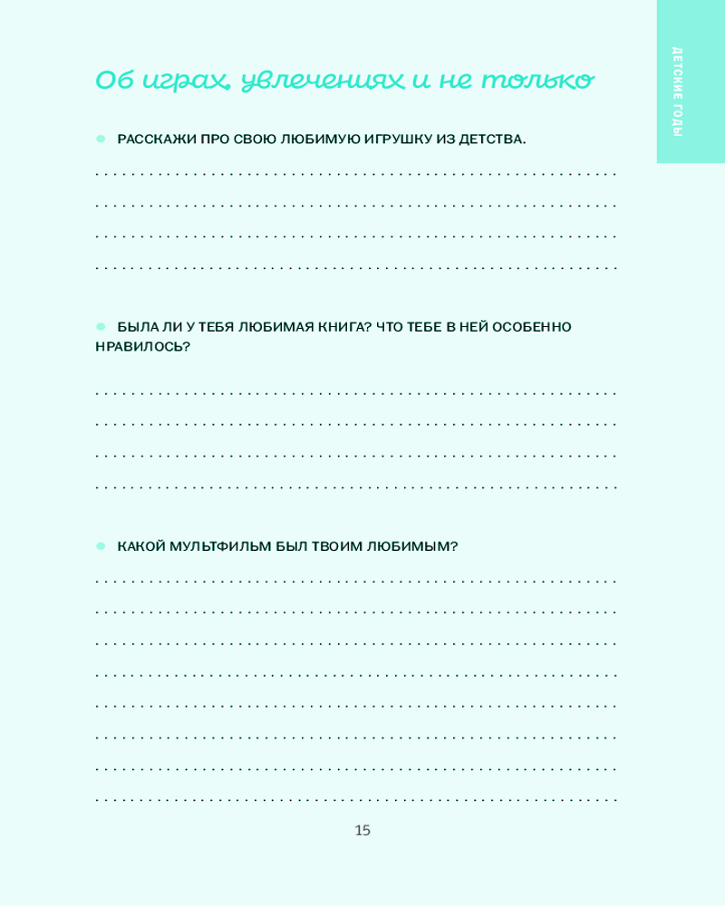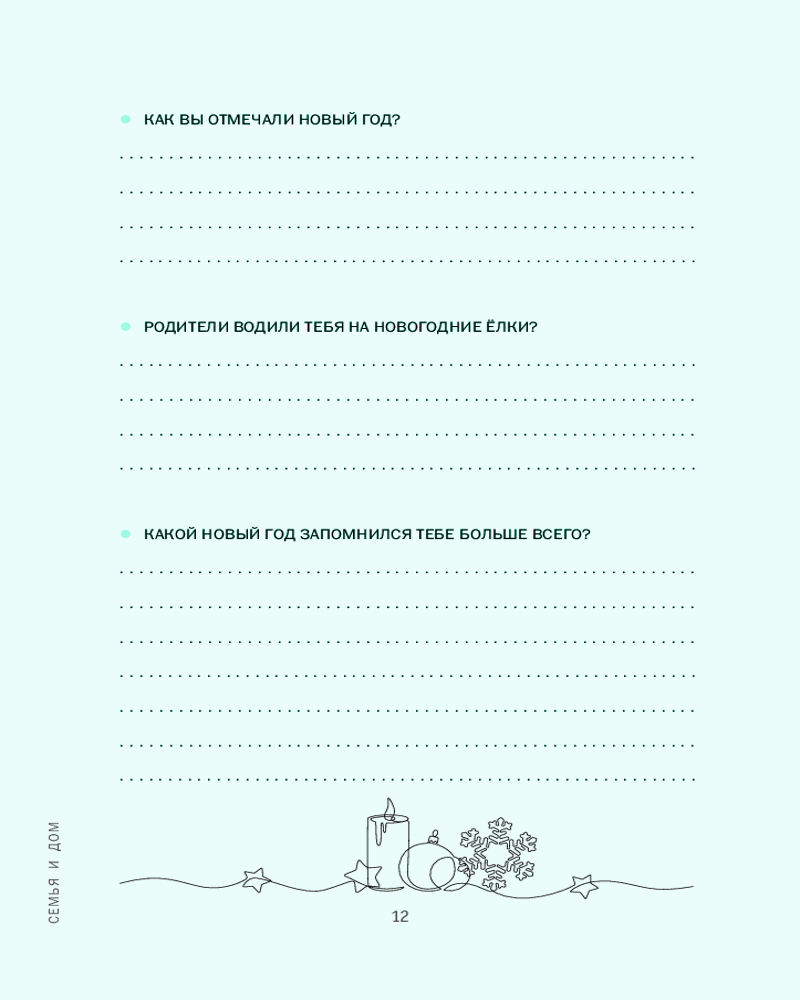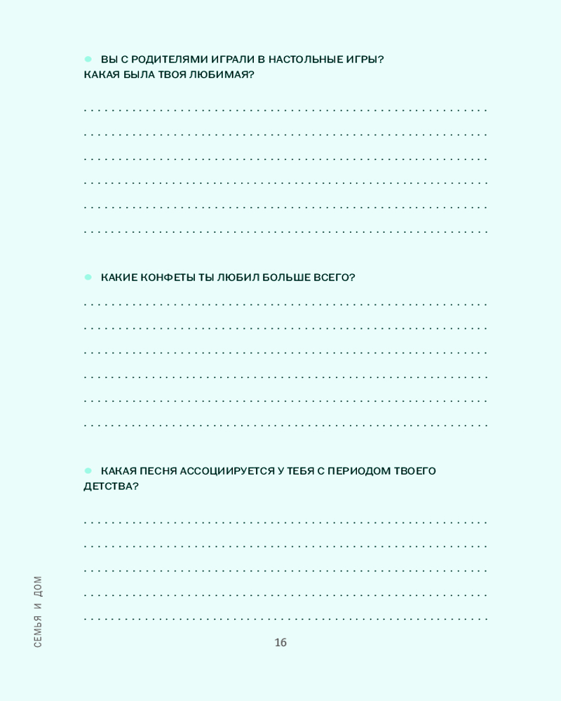 Более 310 тем для искренних и душевных бесед с папой! Эта книга — не просто семейный альбом или сборник вопросов. Эта книга — ваше признание в любви своему папе. Заполните ее вместе с ним или запишите ответы самостоятельно с его слов и создайте семейное древо. Если хотите, можете задавать вопросы последовательно, ведь все они расположены хронологически — от детства к нынешнему возрасту. Но на самом деле никаких правил нет! Можете начать диалог с любого места и дальше ориентироваться на ход беседы, переходя от раздела к разделу в зависимости от приходящих воспоминаний. Пусть эта новая традиция станет шагом к узнаванию уникальной истории вашей семьи.