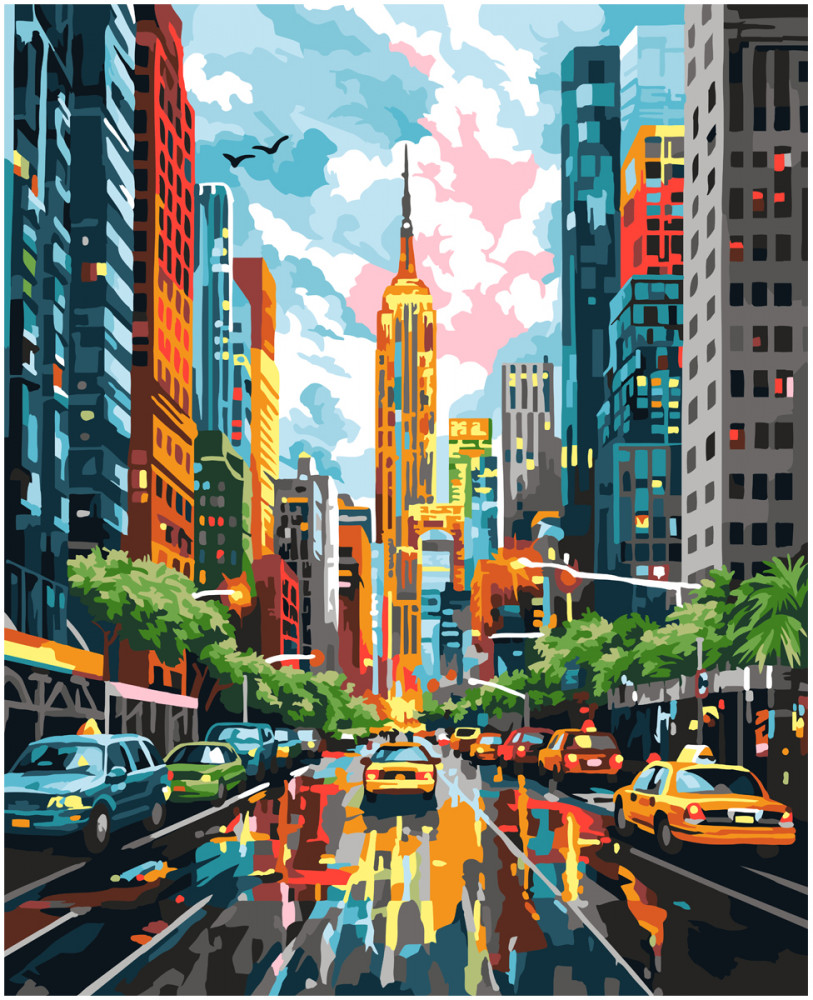 • холст на деревянном подрамнике 40×50 см с нанесенным контуром, пронумерованный в соответствии с номерами красок. Контур под раскрашивание нанесен и на торцы подрамника, что позволяет разместить готовую работу на стене, не обрамляя в багет или раму. Технология точной разбивки сюжета картины на разные цветовые оттенки гарантируют правильность исполнения полотна;