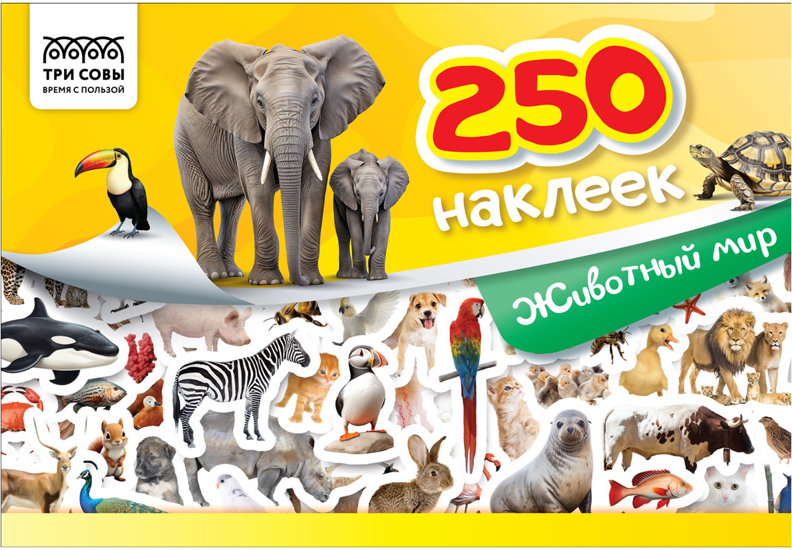 Три совы Альбом с наклейками «250 наклеек. Животный мир»-20% +11