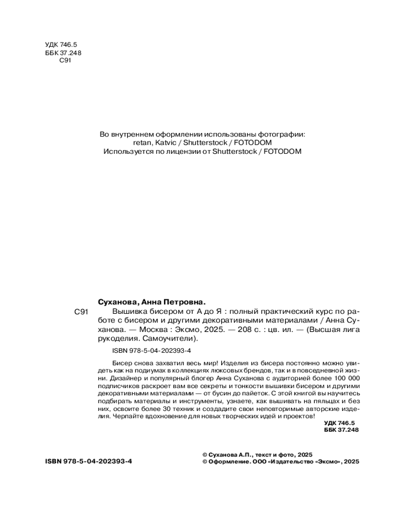 Вышивка бисером от А до Я. Полный практический курс по работе с бисером и другими декоративными материаламиВ данный момент этот товар отсутствует в продаже. Возможно, у нас найдется аналогичный или похожий товар здесь. Серия: Высшая лига рукоделия. Самоучители Бисер снова захватил весь мир! Изделия из бисера постоянно можно увидеть как на подиумах в коллекциях люксовых брендов, так и в повседневной жизни. Бисер украшает одежду, головные уборы, сумки, обувь и аксессуары. Если при взгляде на все это великолепие у вас захватывает дух, эта книга точно для вас! Дизайнер и популярный блогер Анна Суханова с аудиторией более 100 000 подписчиков раскроет вам все секреты и тонкости вышивки бисером и другими декоративными материалами. Создавайте свои неповторимые авторские изделия и черпайте вдохновение для новых творческих идей и проектов! |