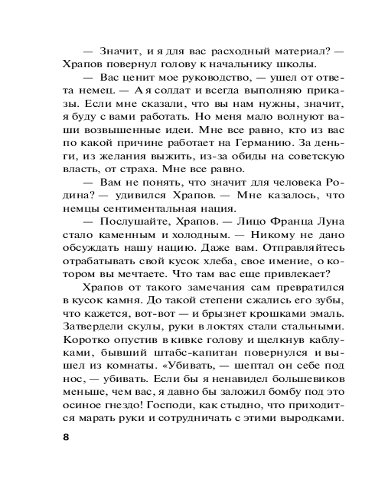 💳 Оплатить за товар можно при получении 🇰🇿 Есть бесплатная доставка по Казахстану от 1 дня 🎁 Копите бонусы с каждой покупки Серия: Личный отряд Берии. Романы о неизвестных операциях НКВД Роман о военном времени, о сложных судьбах и опасной работе неизвестных героев, вошедших в ударный состав «спецназа Берии». Готовя летне-осеннюю кампанию 1942 года, германское командование активизировало заброску диверсионных групп в Поволжье. Одной из целей абвера стал Саратовский железнодорожный мост — важная стратегическая артерия, соединяющая тыл с фронтом. Выявить и уничтожить опасного врага поручено подразделению во главе с майором Максимом Шелестовым. Оперативникам удается выйти на след вражеской группы, готовящей атаку на мост. Но в последний момент становится известно, что это — всего лишь группа прикрытия. Основные же силы противника могут нанести удар по объекту в любое время... |