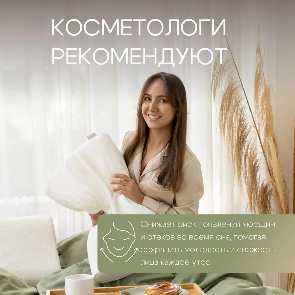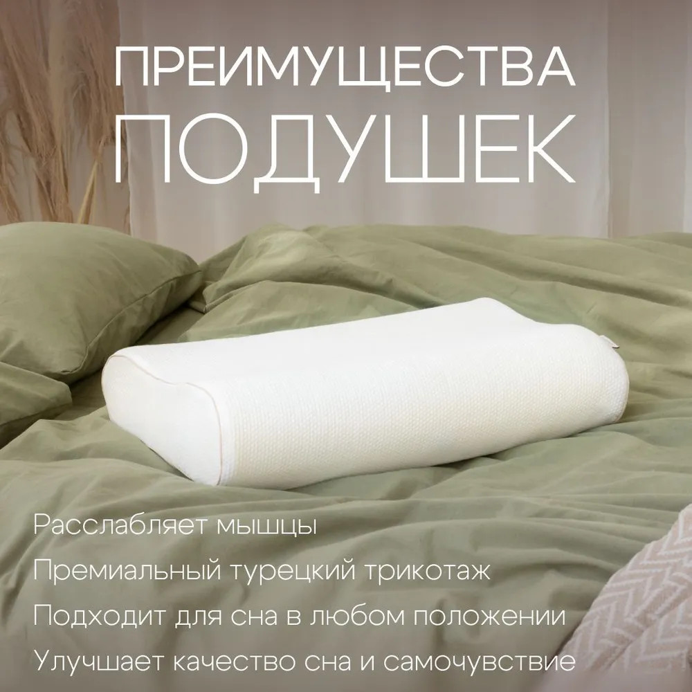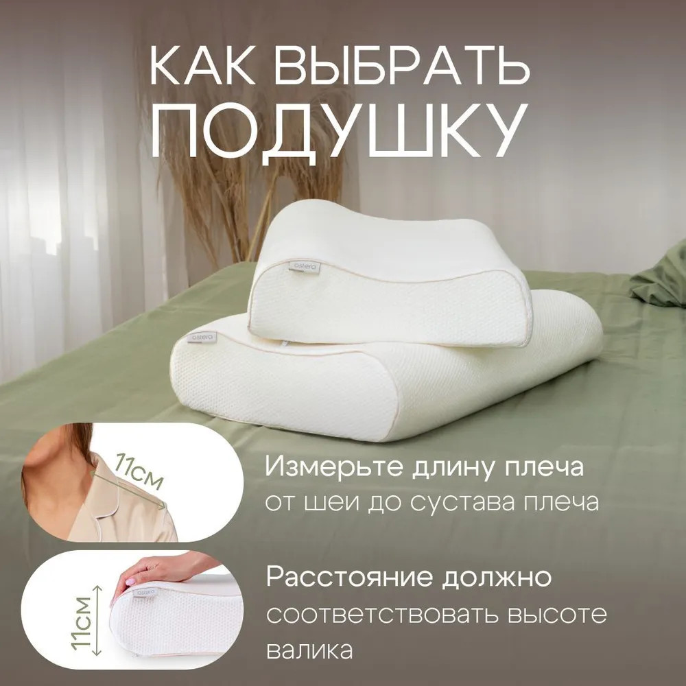 Анатомическая подушка с валиками для комфортного и здорового сна. Высота валиков: 13 и 11 см. Жесткость: средняя. Наполнитель из экологически чистого пенополиуретана с эффектом памяти Memory Foam поддерживает голову и шею во время отдыха, распределяя нагрузку на позвоночник. Комфортно спать на боку и на спине. Современная умная пена также улучшает кровообращение, предотвращает появление заломов и отеков на лице. Рекомендуется как профилактика при остеохондрозе, храпе и головной боли.