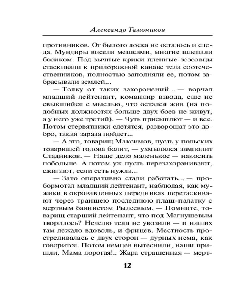 | Александр Александрович Тамоников – российский писатель. Окончил Самаркандское высшее военно-командное училище. Участник боевых действий. Имеет правительственные награды. Член Союза писателей и Союза журналистов России. Александр Тамоников - автор более тридцати романов военно-политического и детективного жанров, ставших бестселлерами, общий тираж которых превысил миллион экземпляров. Лауреат международных и всероссийских литературных премий, а также премии общественного признания... |