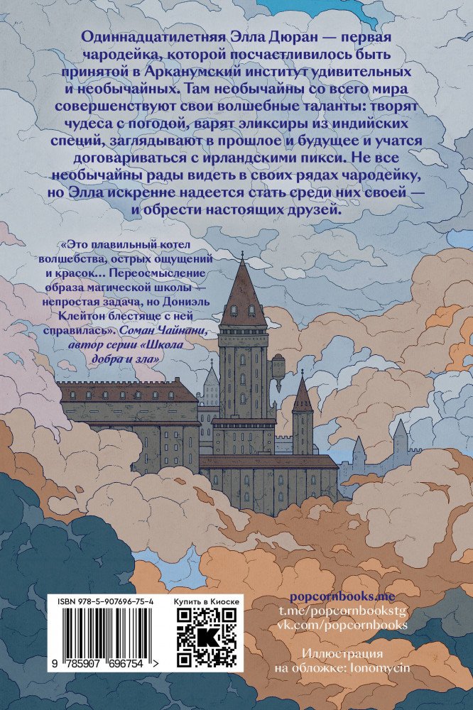 💳 Оплатить за товар можно при получении 🇰🇿 Есть бесплатная доставка по Казахстану 🎁 Копите бонусы с каждой покупки Одиннадцатилетняя Элла Дюран — первая чародейка, которой посчастливилось быть принятой в Арканумский институт удивительных и необычайных. Там необычайны со всего мира совершенствуют свои волшебные таланты: творят чудеса с погодой, варят эликсиры из индийских специй, заглядывают в прошлое и будущее и учатся договариваться с ирландскими пикси. Не все необычайны рады видеть в своих рядах чародейку, но Элла искренне надеется стать среди них своей — и обрести настоящих друзей. |