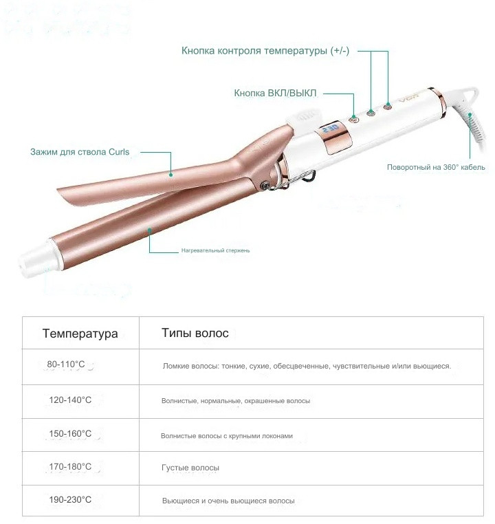 💳 Оплатить за товар можно при получении 🇰🇿 Есть бесплатная доставка по Казахстану от 1 дня 🎁 Копите бонусы с каждой покупки Профессиональная плойка для завивки волос VGR - укладка как из салона в домашних условиях. Шаг нагрева варьируется от 80 до 230 градусов с шагом в 10 градусов, благодаря этому вы сможете выбрать для себя оптимальную температуру для идеальной укладки без вреда для волос! Имеет турмалиновое покрытие, обеспечивая быстрый нагрев за несколько секунд. Профессиональная плойка создающая великолепные локоны в домашних условиях за несколько секунд. Такой плойкой можно работать с любыми типами волос и результат будет превосходным! |