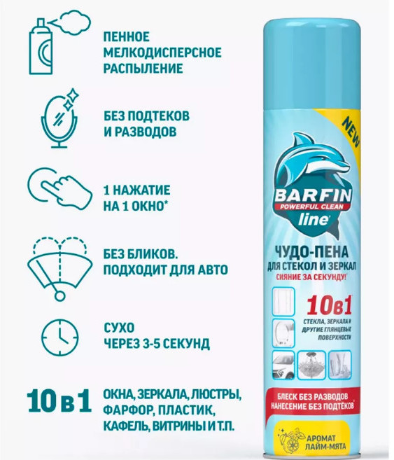 Barfin Чудо-пена для стекол и зеркал «Лайм-мята»