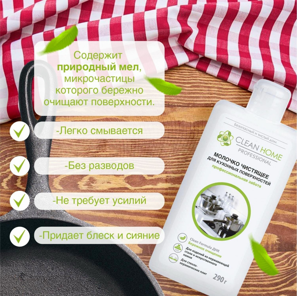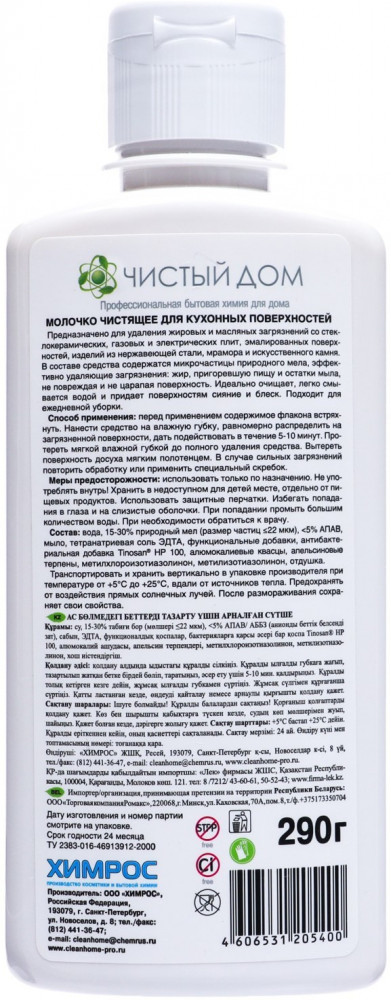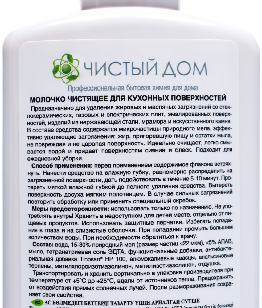 Clean Formula ДНК — действительно необходимые компоненты бережно очищающие поверхности — природный мел, его микрочастицы эффективно удаляют загрязнения: жир, пригоревшую пищу и остатки мыла, не повреждая и не царапая поверхность. Формула не содержит агрессивных компонентов и абразивов.