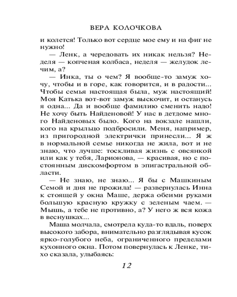 💳 Оплатить за товар можно при получении 🇰🇿 Есть бесплатная доставка по Казахстану от 1 дня 🎁 Копите бонусы с каждой покупки Серия: Секреты женского счастья. Проза Веры Колочковой (обложка) Библиография Веры Колочковой насчитывает более 60 романов, многие из которых уже воплощены на экране. Любовь к автору вполне объяснима, ведь она пишет об обычных людях, которые стремятся к лучшей жизни и борются за собственное счастье. Простые и чувственные, увлекательные и романтичные, романы Колочковой задевают за живое, заставляя сопереживать и радоваться героям как своим знакомым. |