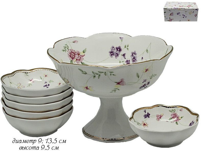 Lenardi Набор для варенья из креманки и розеток «Флоренс»В данный момент этот товар отсутствует в продаже. Возможно, у нас найдется аналогичный или похожий товар здесь. Серия: Флоренс Коллекция «Флоренс» выполнена из фарфора. Отличительной особенностью декора является простота рисунка — он изображает яркие полевые цветы на белом фоне. Кажущаяся простота только подчеркивает правильность линий и респектабельность посуды. Форма бортика волна с золотой окантовкой. |