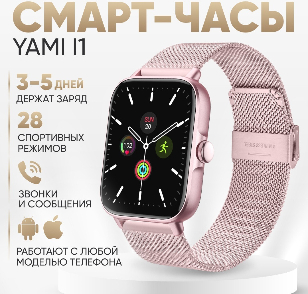 Смарт-часы YAMI i1 обеспечивают удобство в повседневной жизни. Они принимают уведомления и SMS из всех мессенджеров, позволяют совершать и принимать звонки прямо с часов, а также оснащены встроенным шагомером и 28 спортивными режимами. Дополнительно часы поддерживают функцию измерения пульса, помогая следить за состоянием здоровья. В комплекте предусмотрен сменный ремешок с миланским плетением, который добавляет часам элегантности.