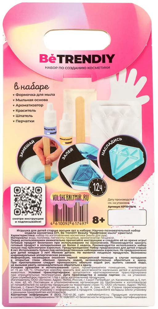 Предупреждение! Использовать под наблюдением взрослых. Не предназначено для детей младше 3-х лет! Мелкие детали. Не является пищевым продуктом. Возможны индивидуальные аллергические реакции.