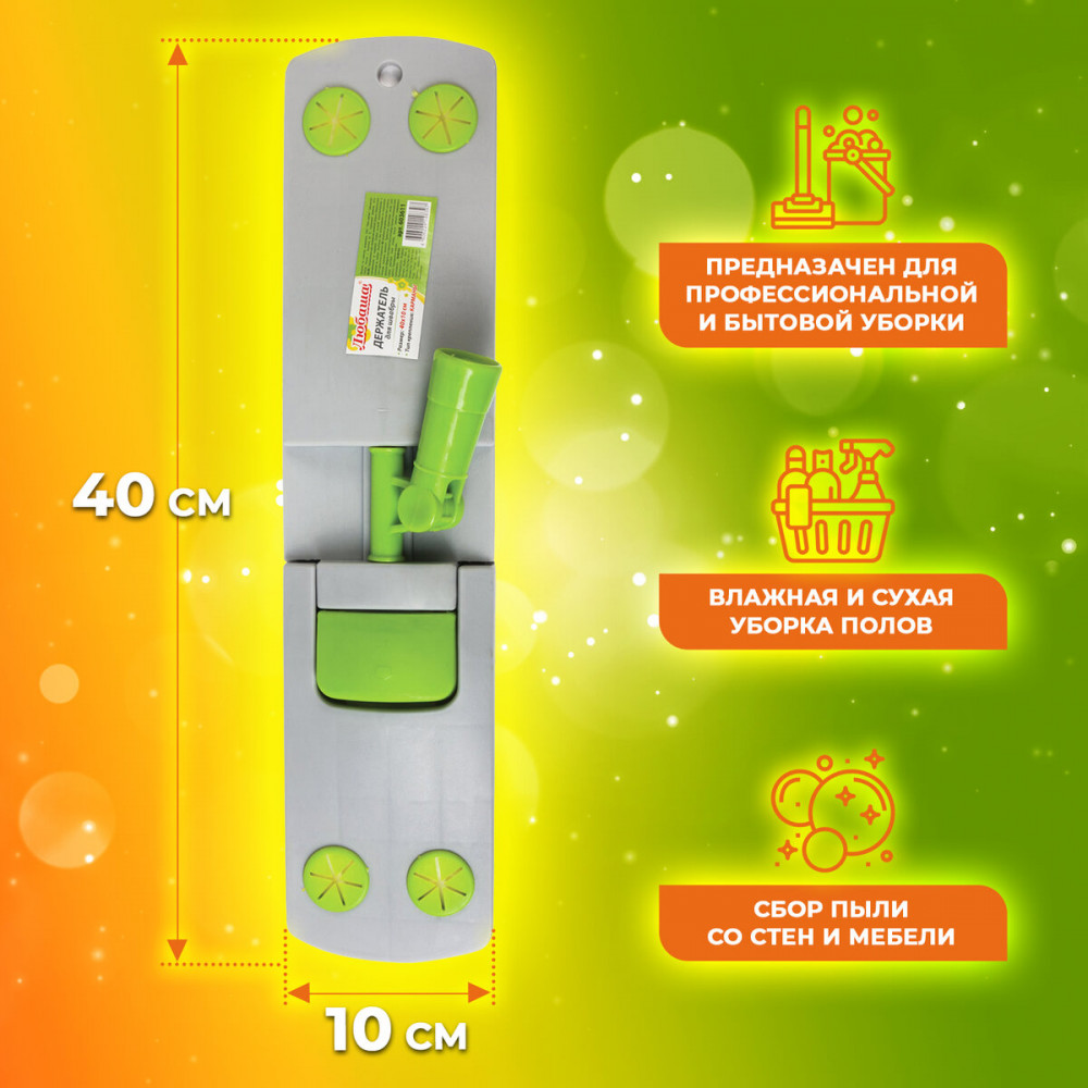 💳 Оплатить за товар можно при получении 🇰🇿 Есть бесплатная доставка по Казахстану от 1 дня 🎁 Копите бонусы с каждой покупки Держатель-флаундер Любаша предназначен для профессиональной и бытовой, влажной и сухой уборки полов, сбора пыли со стен и мебели. Используется в комплекте с ручкой и насадкой с карманами. Подходит для использования в устройствах отжима. Изготовлен из качественного пластика. Складывается при нажатии на кнопку. Благодаря плоской вращающейся платформе и длинной ручке швабра-флаундер способна проникнуть в труднодоступные места. Шарнирное соединение. Складной механизм. Размер — 40 × 10 см. |