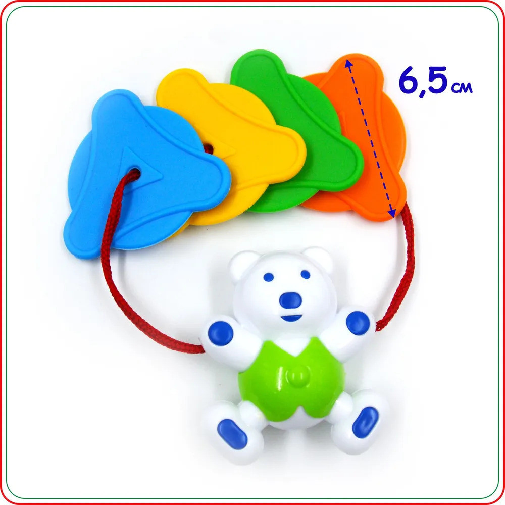 • внутри игрушки пластиковые шарики, которые издают звуки от столкновения со стенками;