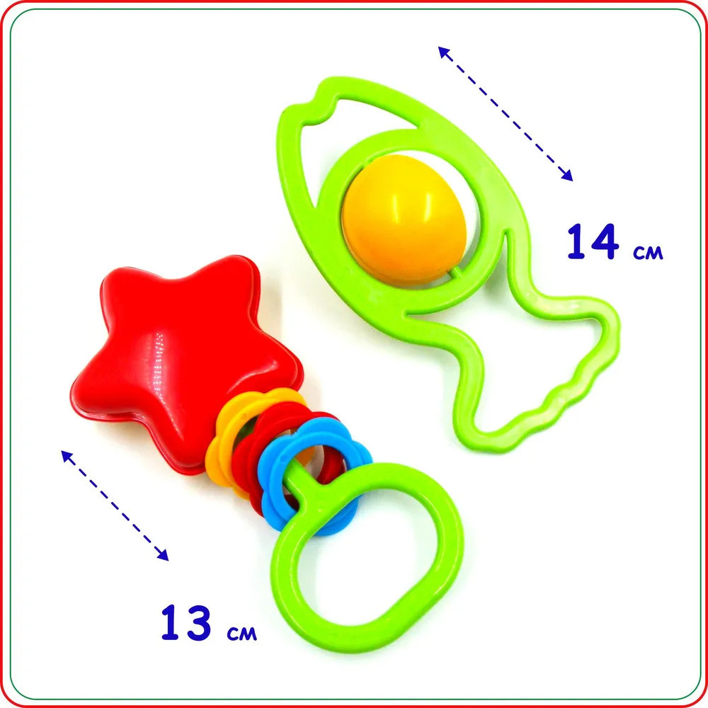 Яркий набор погремушек привлечет внимание малыша, и станет отличным подарком. Игрушка привлекает внимание и способствует развитию тактильного, зрительного и слухового восприятия, развитию мелкой моторики рук ребенка. Оказывают огромное влияние на физическое, умственное, эмоциональное развитие и способствуют развитию речи и зрения