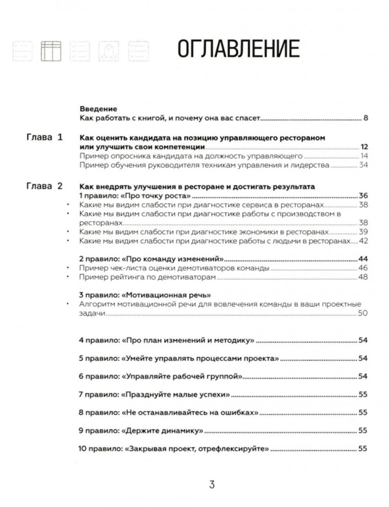Главные герои этой книги — шаблоны, чек-листы, инструкции, бланки оценки. Всё по сервису и работе кухни и бара. Еще здесь есть описания того, как использовать каждый документ, как его внедрить и адаптировать. В том числе пошаговый план улучшения работы в каждом направлении. Многие осознают важность постановки эффективных процессов в ресторане по всем направлениям, знают, как он устроен, но не понимают, какие документы нужно использовать в работе, чтобы добиваться положительного результата. Книга снимет эту проблему, покажет, как должны быть устроены книги стандартов, и даст примеры конкретных документов для того, чтобы их легко наполнить. В книге будет много шаблонов и бланков. Но не только они, еще и рассказ про системы и техники их внедрения. Цель книги — дать максимально необходимые и полезные для работы шаблоны и чек-листы, бланки оценки, формы для того, чтобы их можно было использовать в управлении ресторанами. |