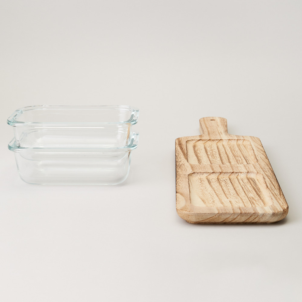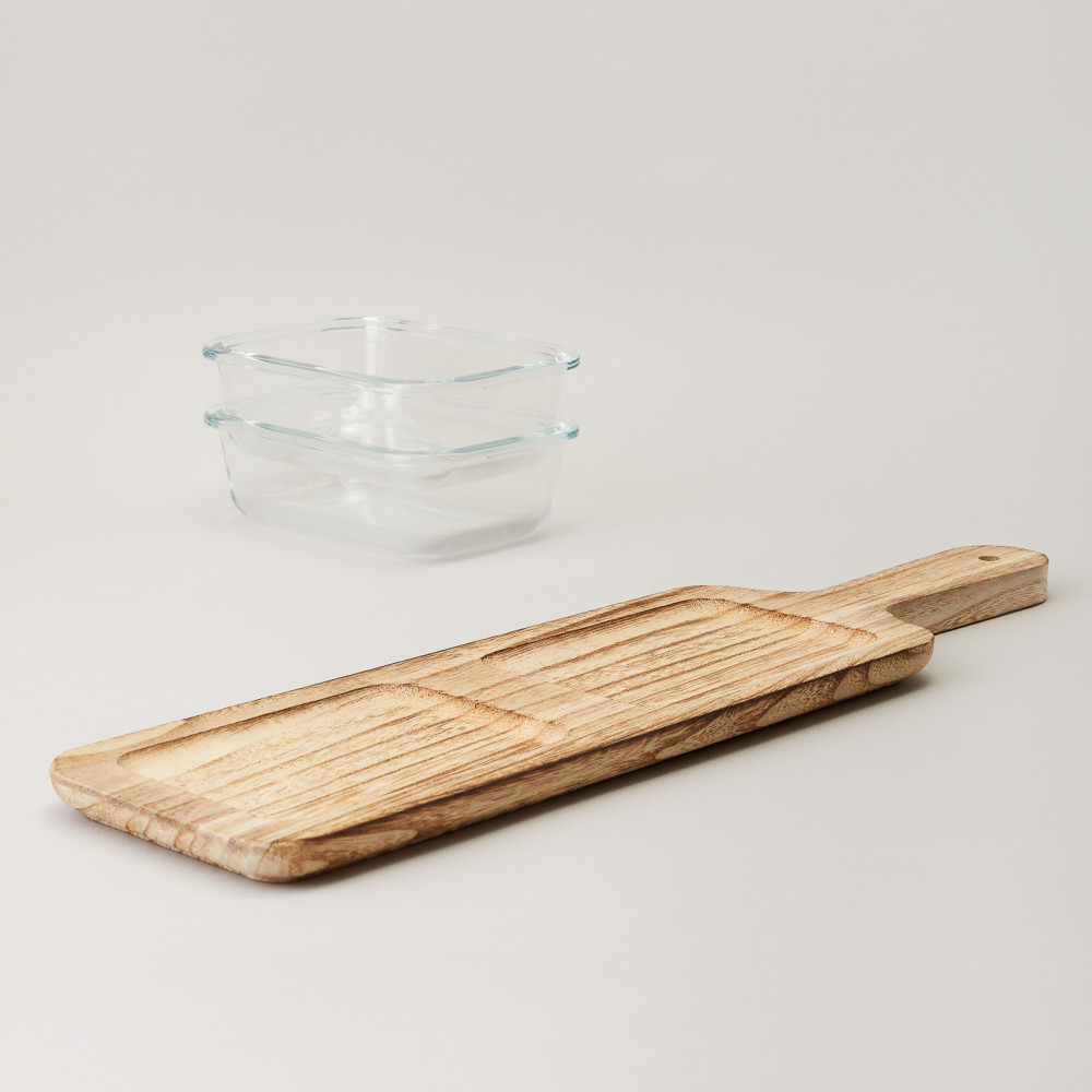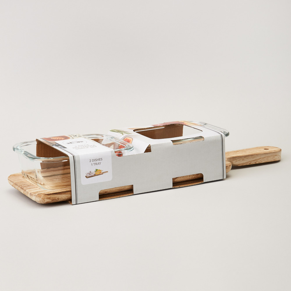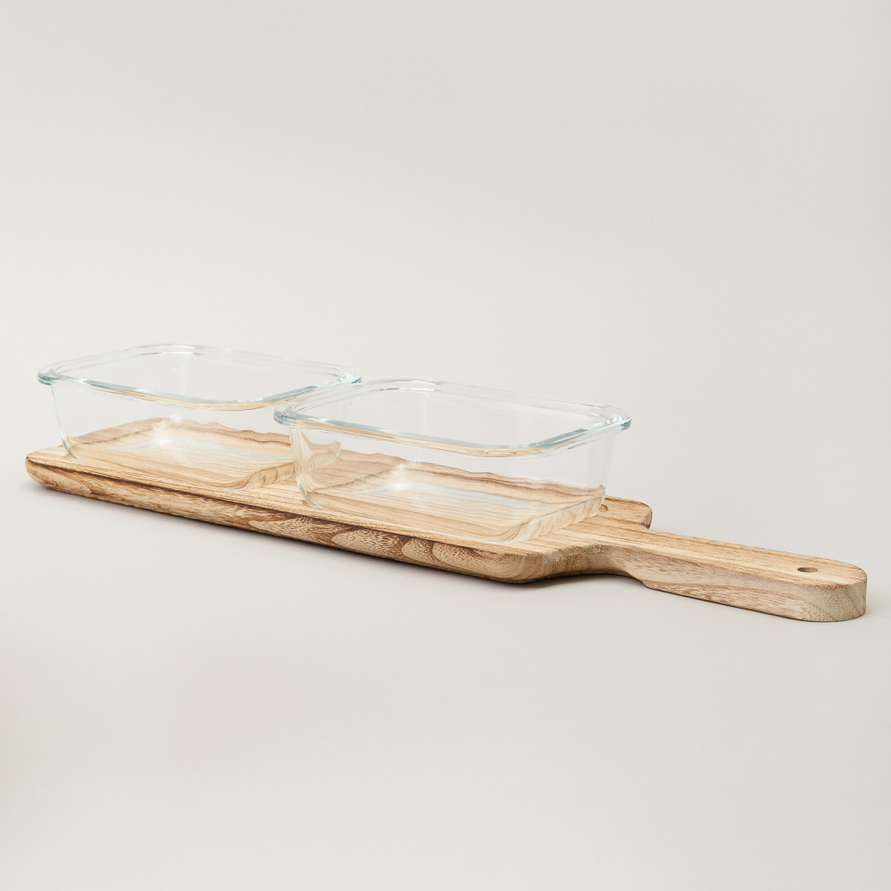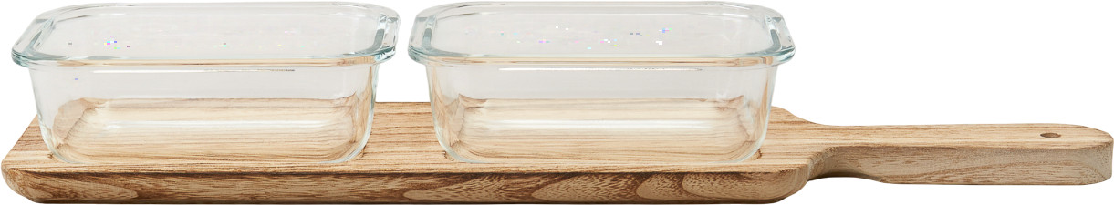 Изящный дизайн и высококачественные материалы делают эту менажницу незаменимой частью вашего стола. Прозрачное стекло позволяет продемонстрировать свежесть и разнообразие блюд, а натуральная деревянная подставка придает изделию изысканность и тепло.