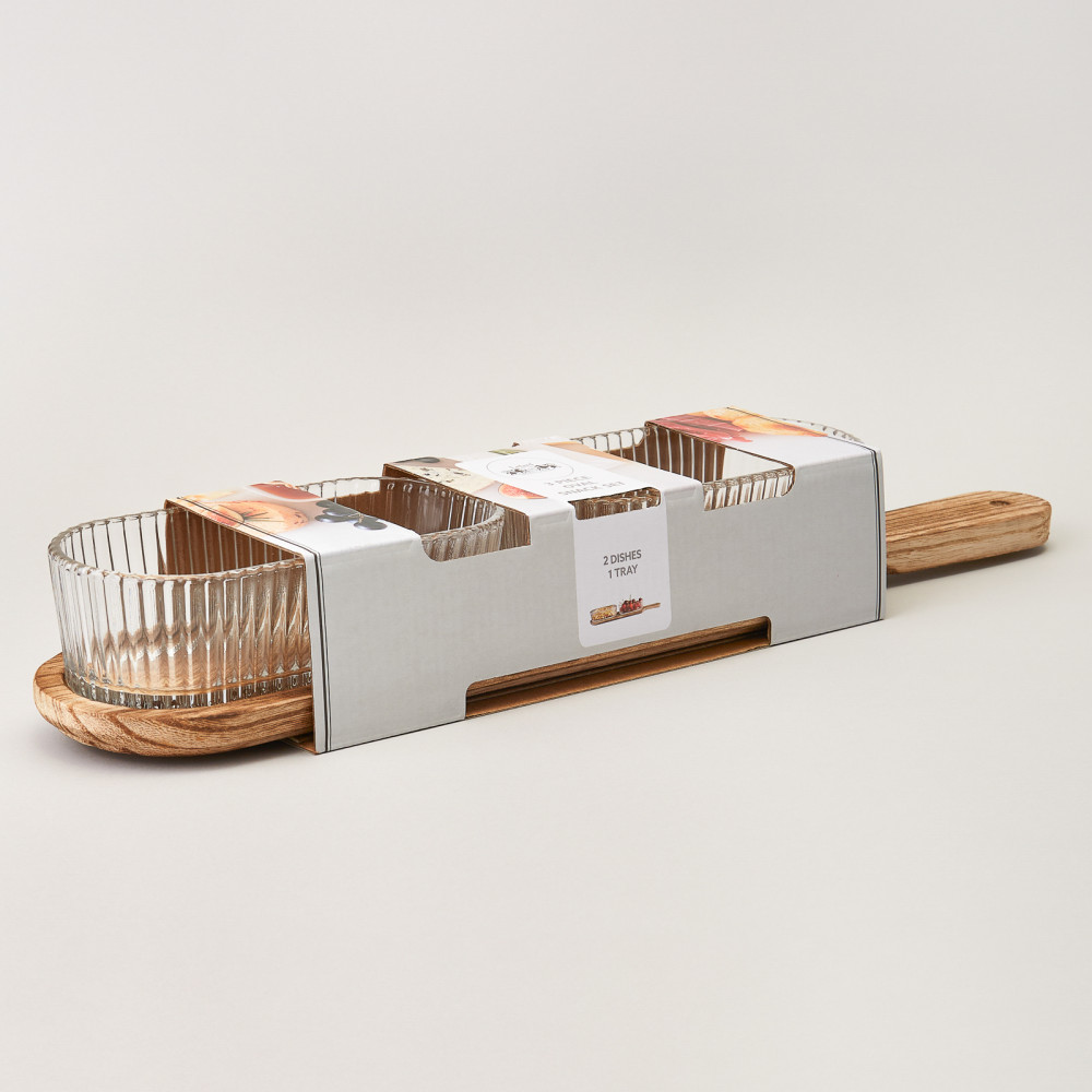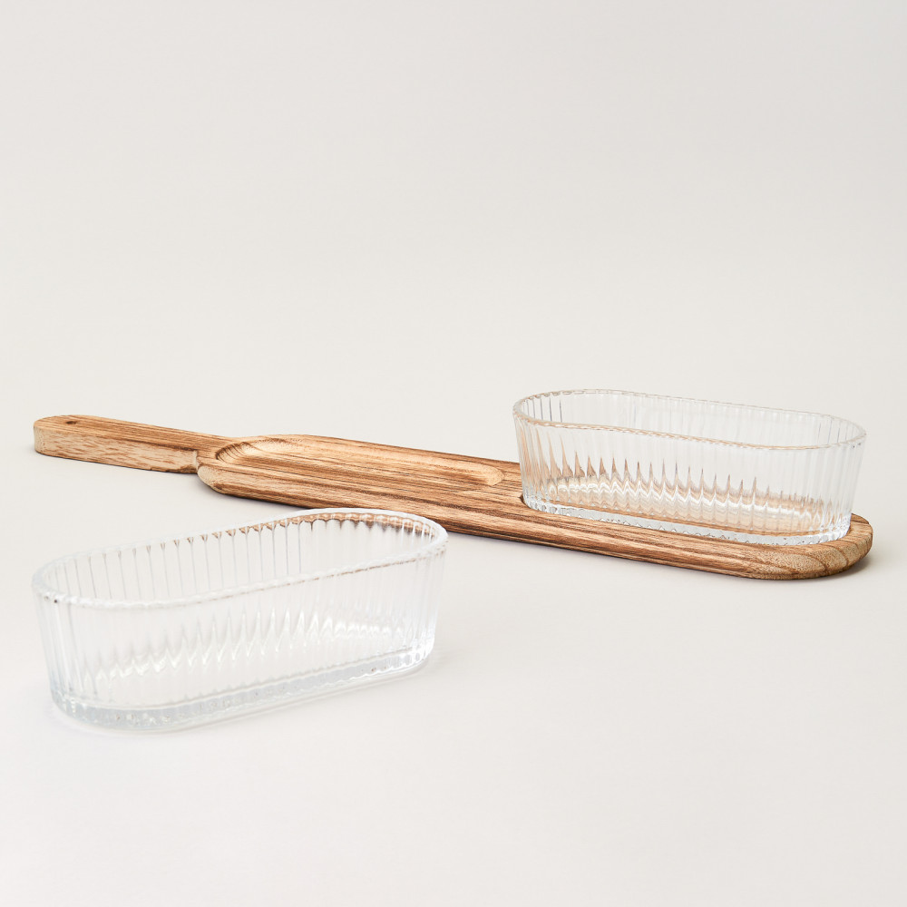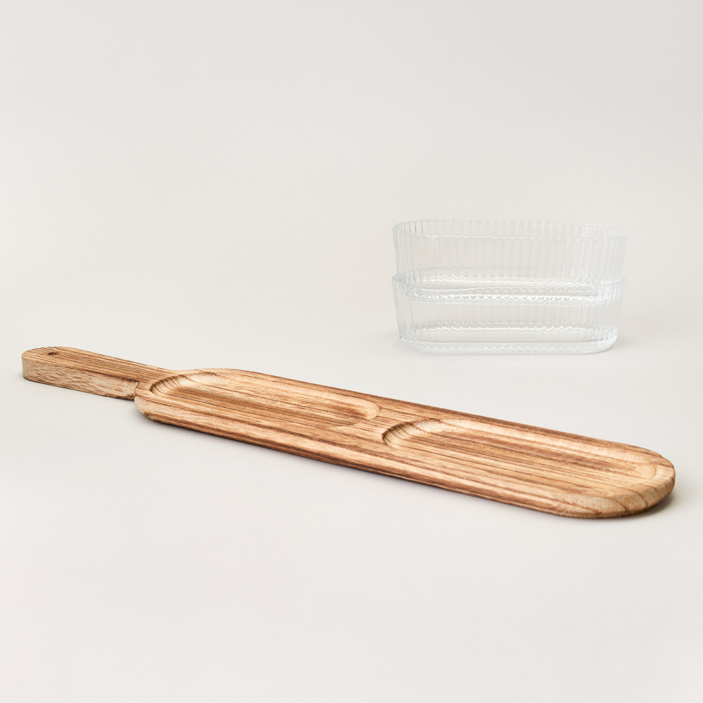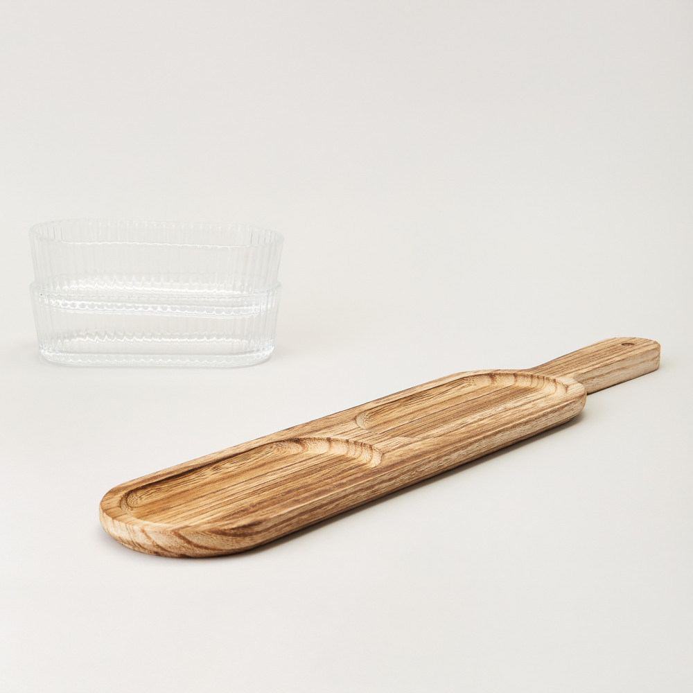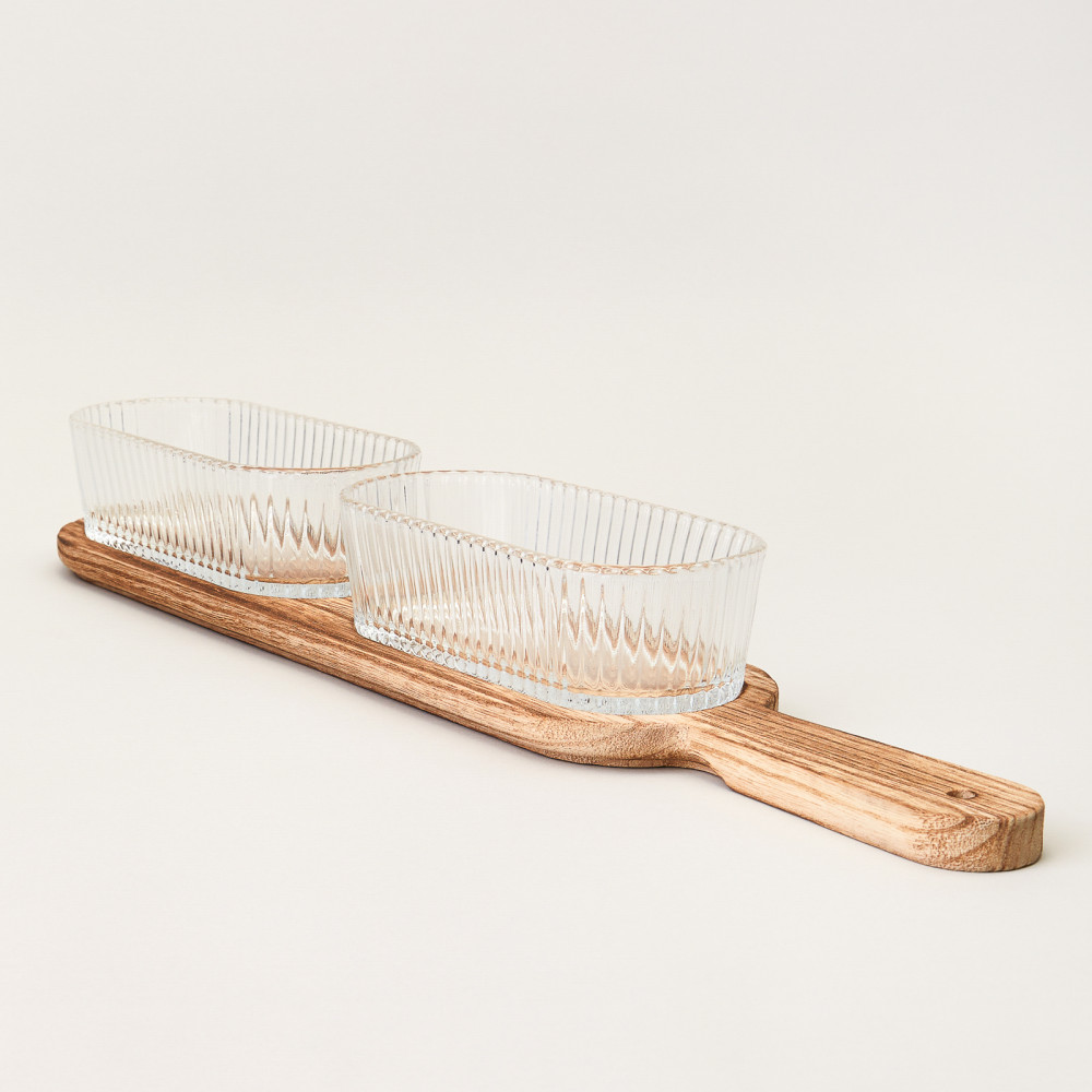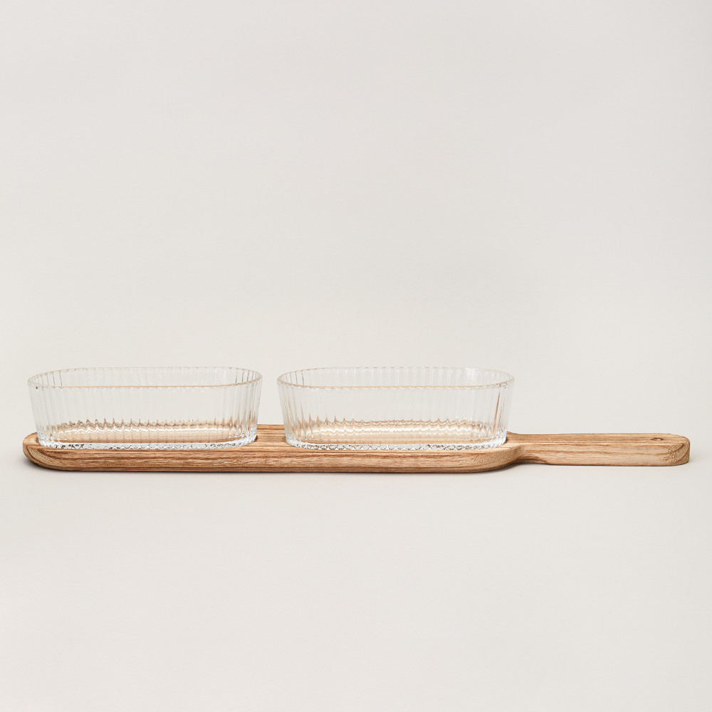 Изящный дизайн и высококачественные материалы делают эту менажницу незаменимой частью вашего стола. Прозрачное стекло позволяет продемонстрировать свежесть и разнообразие блюд, а натуральная деревянная подставка придает изделию изысканность и тепло.