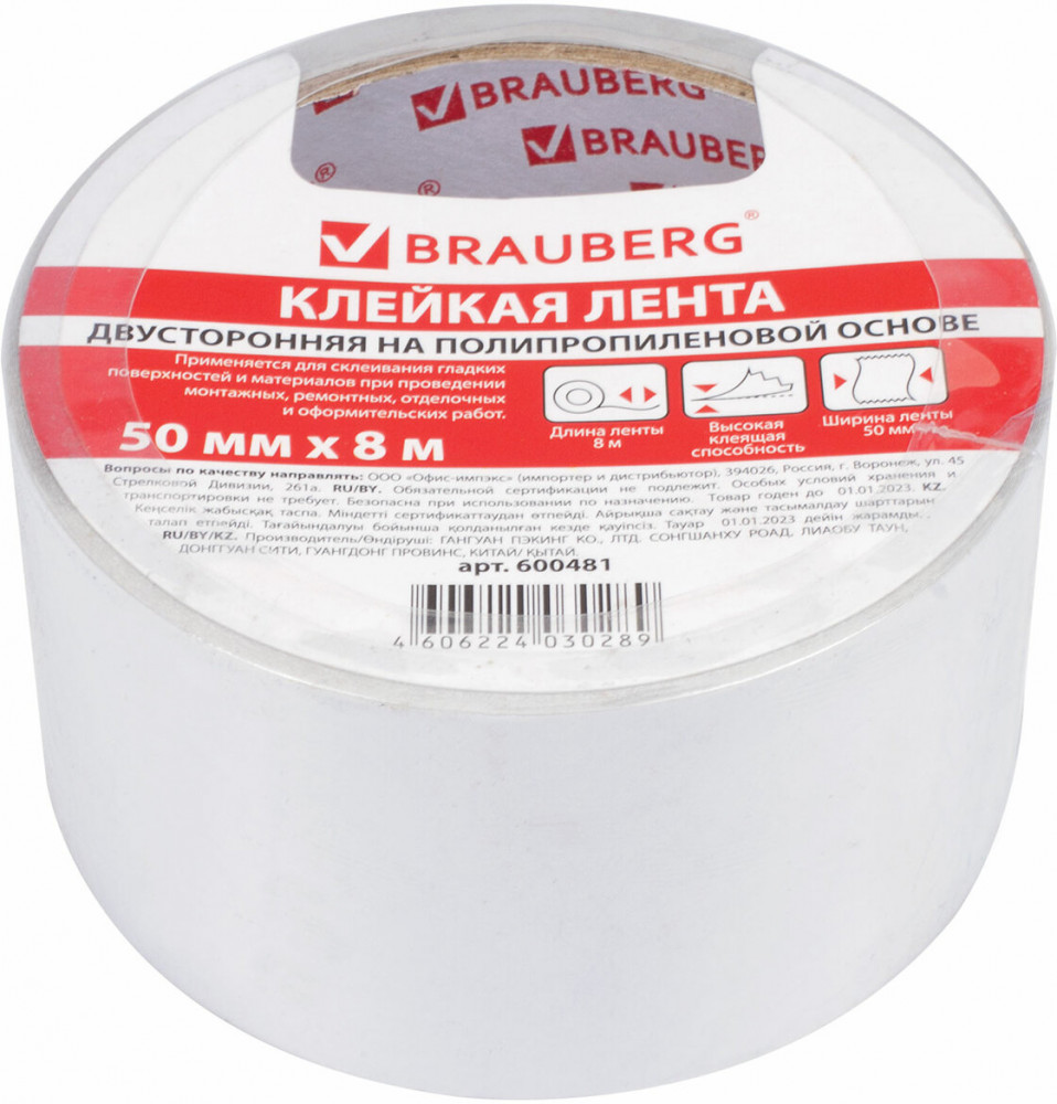 Brauberg Клейкая двухсторонняя лентаВ данный момент этот товар отсутствует в продаже. Возможно, у нас найдется аналогичный или похожий товар здесь. Двухсторонняя клейкая лента Brauberg на основе полипропилена применяется во время монтажных работ внутри помещений, при строительных, монтажных и автомобильных работах. Изготовлена на основе полипропилена. Длина — 8 м, ширина — 50 мм, толщина — 90 мкм. Используется для склеивания гладких поверхностей и материалов при проведении монтажных, ремонтных, дизайнерских и оформительских работ. Рабочая температура: от −10°С до +65°С. Упакована в термоусадочную пленку с этикеткой на каждом ролике. |