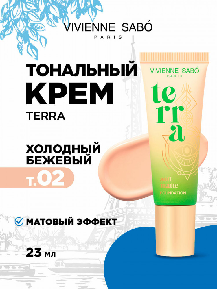 Vivienne Sabo Тональный крем «Terra», оттенок 02 Холодный бежевый