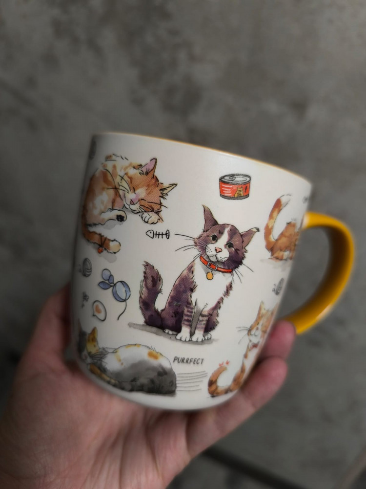Обалденная кружка, поднимает настроение своим милым кошачьим рисунком :)
