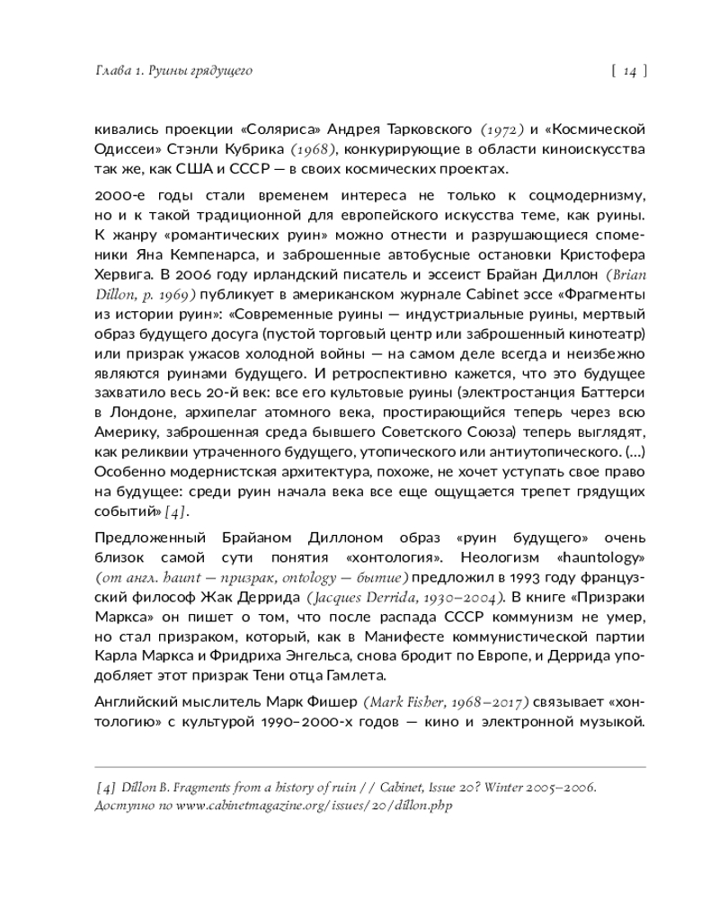 Серия: пАРТер. Лекции К концу XX века будущее, к которому были устремлены мечтания искусства и общества, перестало мыслиться как «светлое» и стало вызывать либо тревогу, либо безразличие. «Хонтология» — термин, предложенный французским философом Жаком Деррида и переосмысленный английским исследователем поп-культуры Марком Фишером, — это поиски утраченной идеи будущего в заброшенных утопиях прошлого. |