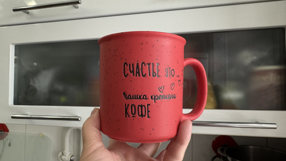 В руке держать удобно, ручка эргономичная. Расцветка оригинальная, не просто красный, а с вкраплениями. Надпись интересная.