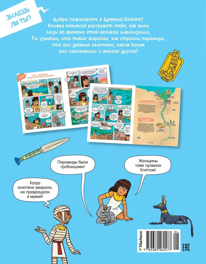 💳 Оплатить за товар можно при получении 🇰🇿 Есть бесплатная доставка по Казахстану от 1 дня 🎁 Копите бонусы с каждой покупки Серия: Комиксы для почемучек Добро пожаловать в Древний Египет! Книжка комиксов расскажет тебе, как жили люди во времена этой великой цивилизации. Ты узнаешь, кто такие фараоны, как строили пирамиды, что ели древние египтяне, каким богам они поклонялись и многое другое! |