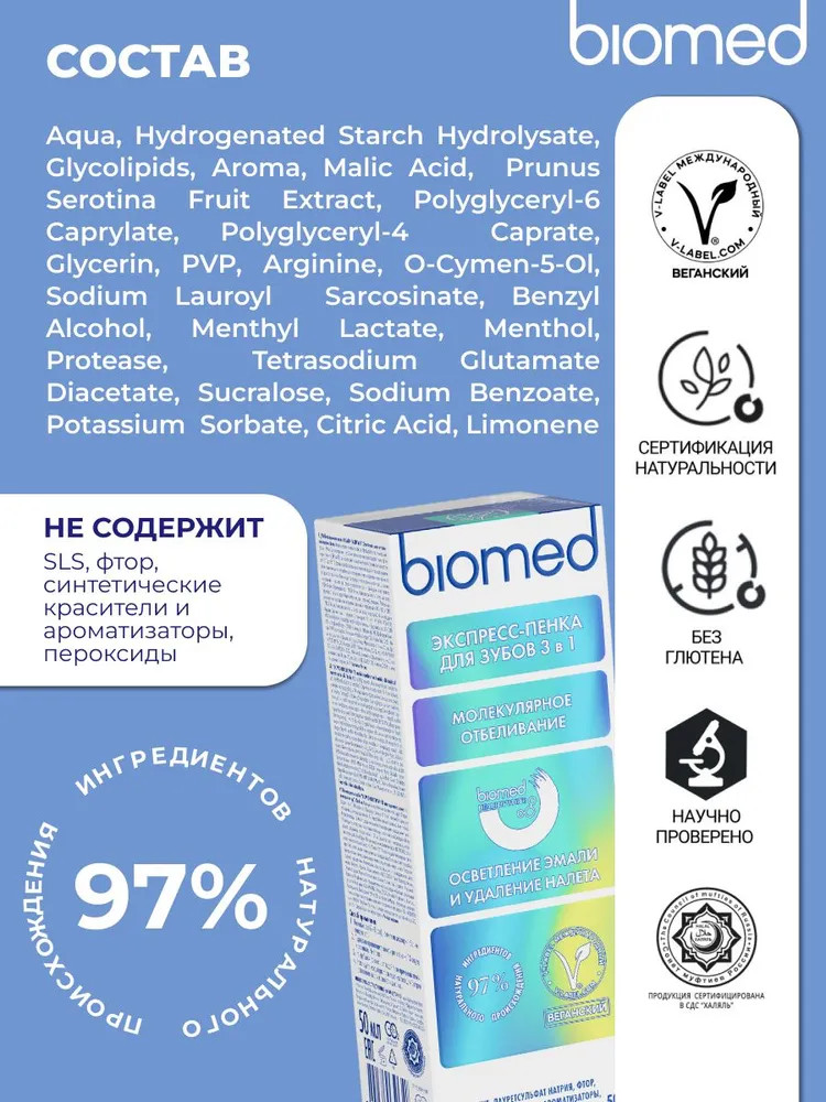 Biomed Пенка для зубов инновационная очищающая «Осветление эмали и удаление налета»