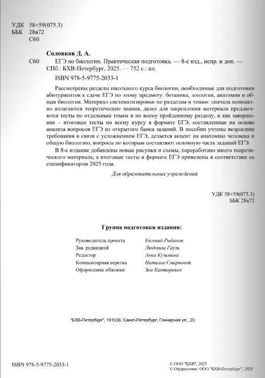 💳 Оплатить за товар можно при получении 🇰🇿 Есть бесплатная доставка по Казахстану от 1 дня 🎁 Копите бонусы с каждой покупки Рассмотрены разделы школьного курса биологии, необходимые для подготовки абитуриентов к сдаче ЕГЭ по этому предмету: ботаника, зоология, анатомия и общая биология. Материал систематизирован по разделам и темам: сначала компактно излагаются теоретические знания, далее для закрепления материала предлагаются тесты по отдельным темам и по всему пройденному разделу, и как завершение — итоговые тесты по всему курсу в формате ЕГЭ, составленные на основе анализа вопросов ЕГЭ из открытого банка заданий. В пособии учтены возросшие требования в связи с усложнением ЕГЭ, делается акцент на анатомию человека и общую биологию, вопросы по которым составляют основную часть заданий ЕГЭ. |