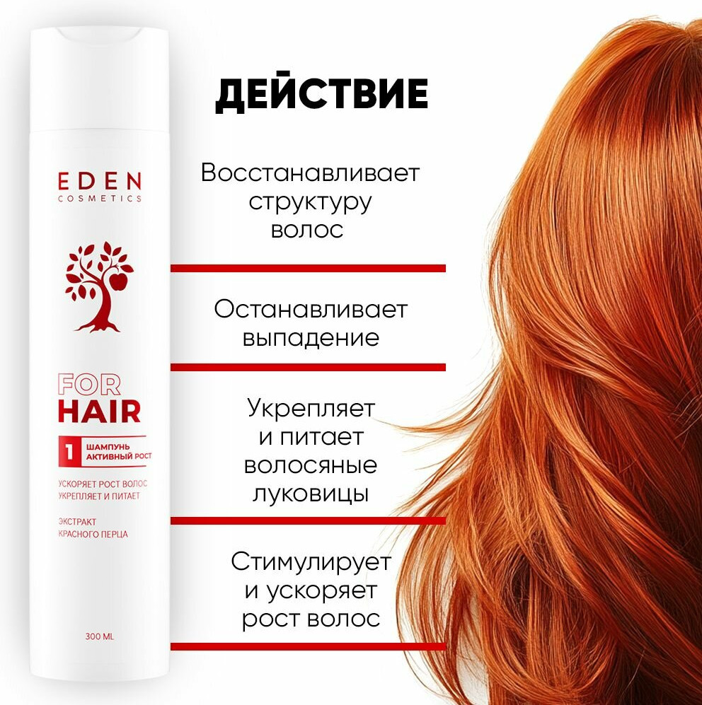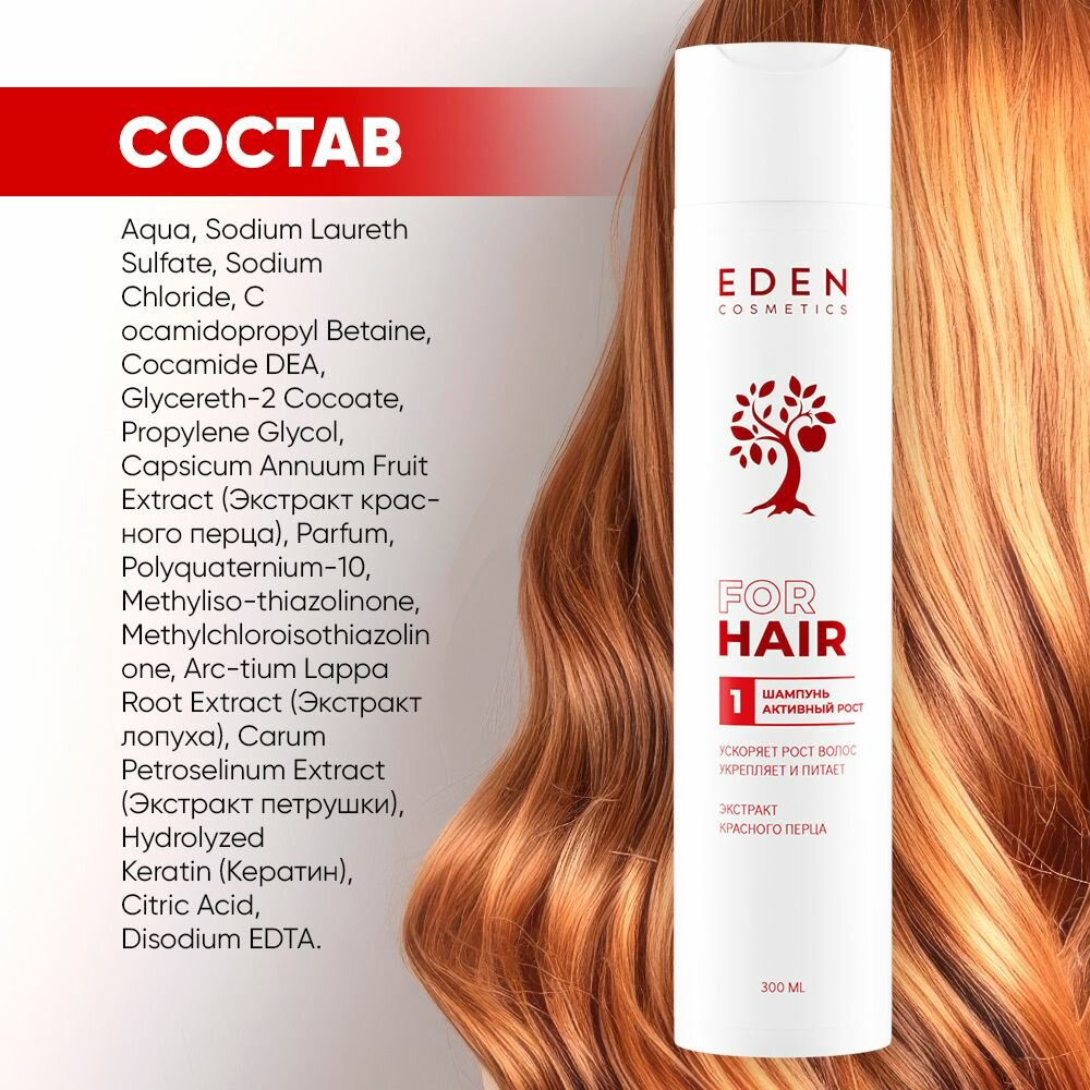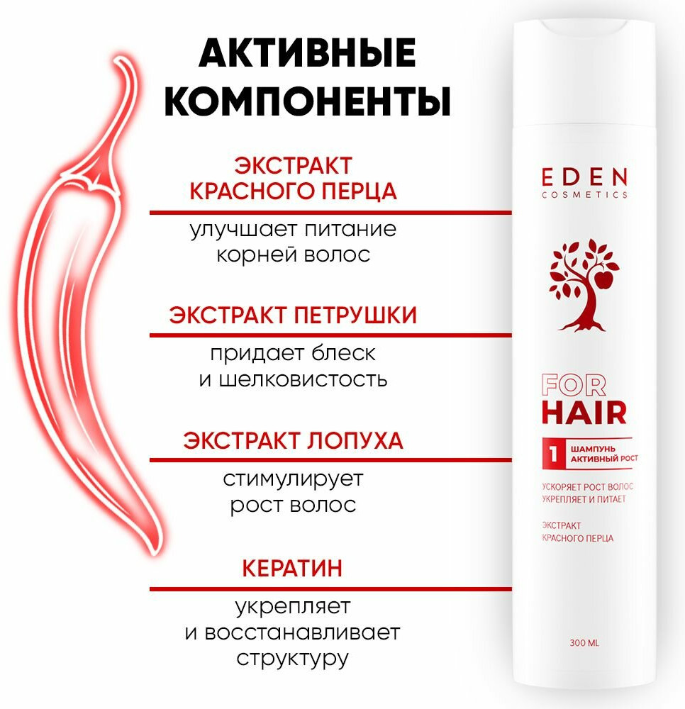 Eden cosmetics Шампунь для волос с экстрактом красного перца «Активный рост»