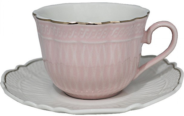Чайная пара демонстрирует изящество и простоту дизайна, сочетающего классическую форму и современный стиль. Она обладает уникальной текстурой и благородным блеском. Гладкая поверхность, с тонким рельефным узором в верхней части и элегантным, тонко окантованным золотистым краем. Узор напоминает сетку или нежные волны, придающие чашке легкий, воздушный вид. Ручка грациозно изогнута, обеспечивая удобный захват, что делает использование комфортным. Чайная пара станет идеальным дополнением для современного дома, добавляя нотку утонченности к ежедневному ритуалу питья чая или кофе, чайной церемонии.