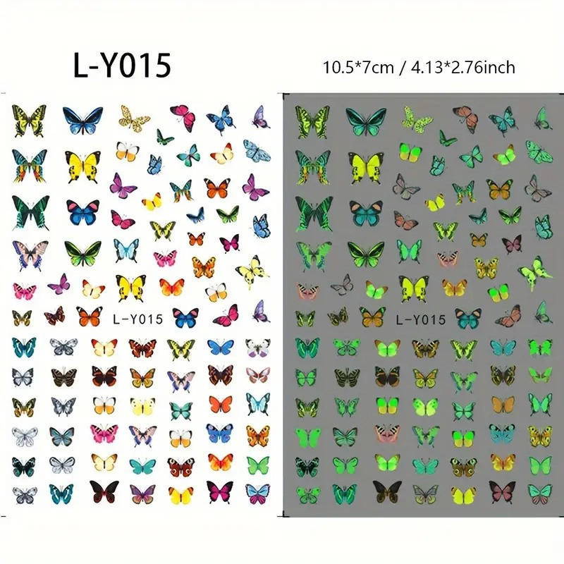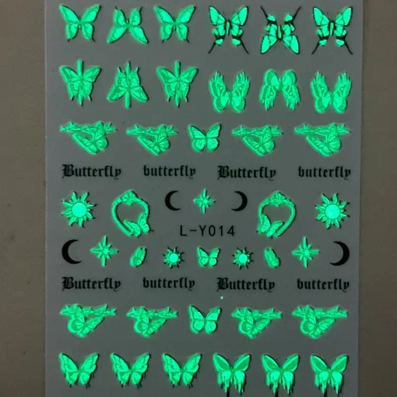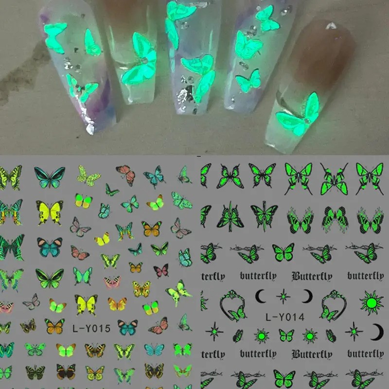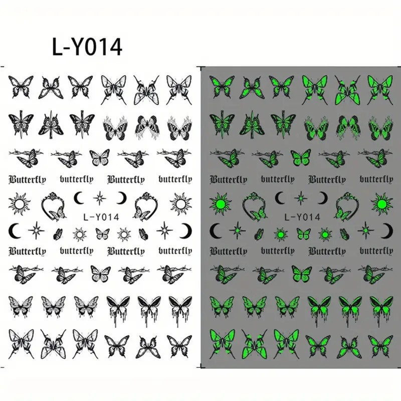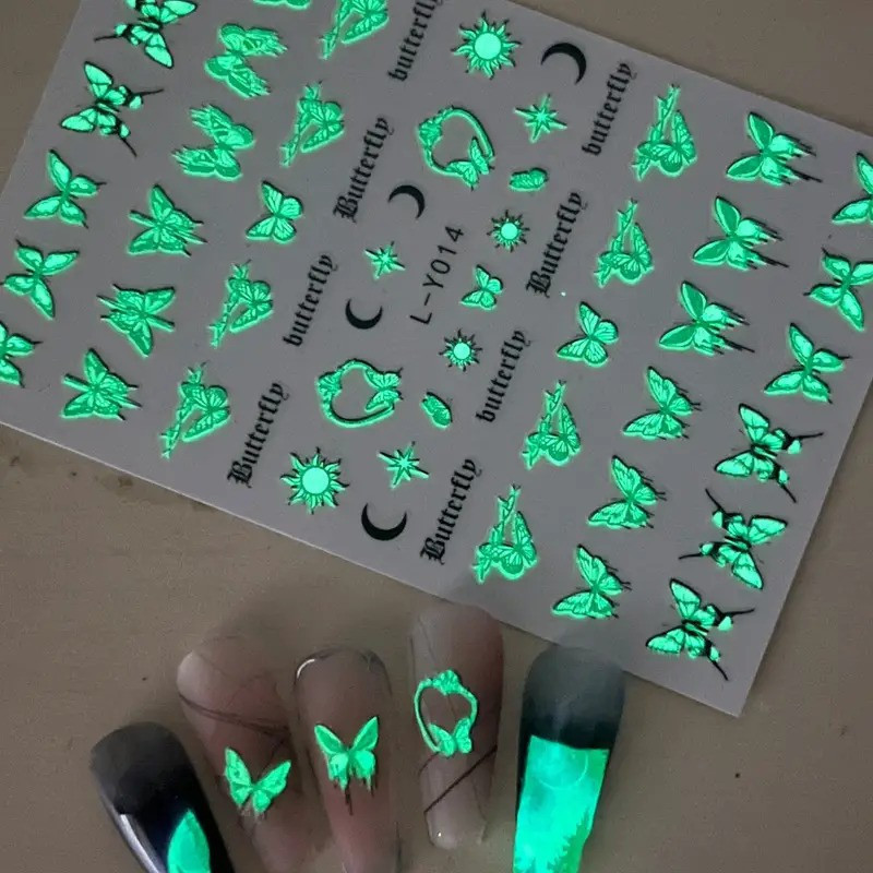 Одним из интересных вариантов являются слайдеры с изображениями бабочек, которые светятся в темноте, добавляя эффектный акцент на ногтях. Такие наклейки не только украшают ногти, но и защищают их от повреждений и сколов, обеспечивая долгосрочный эффект.