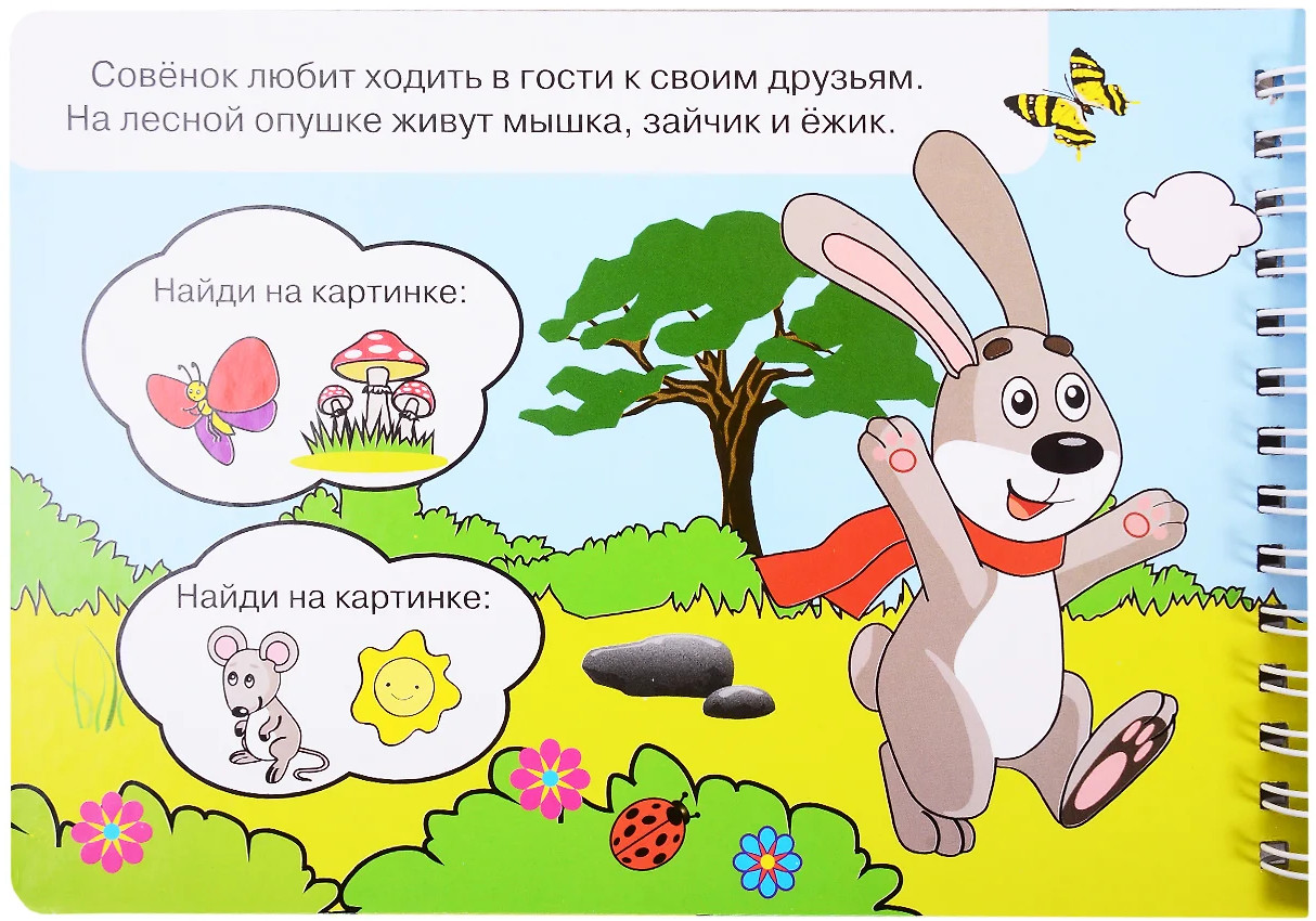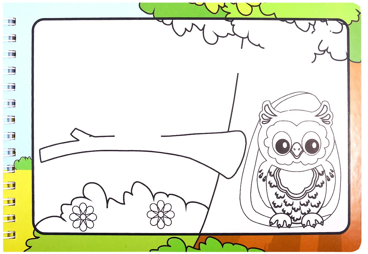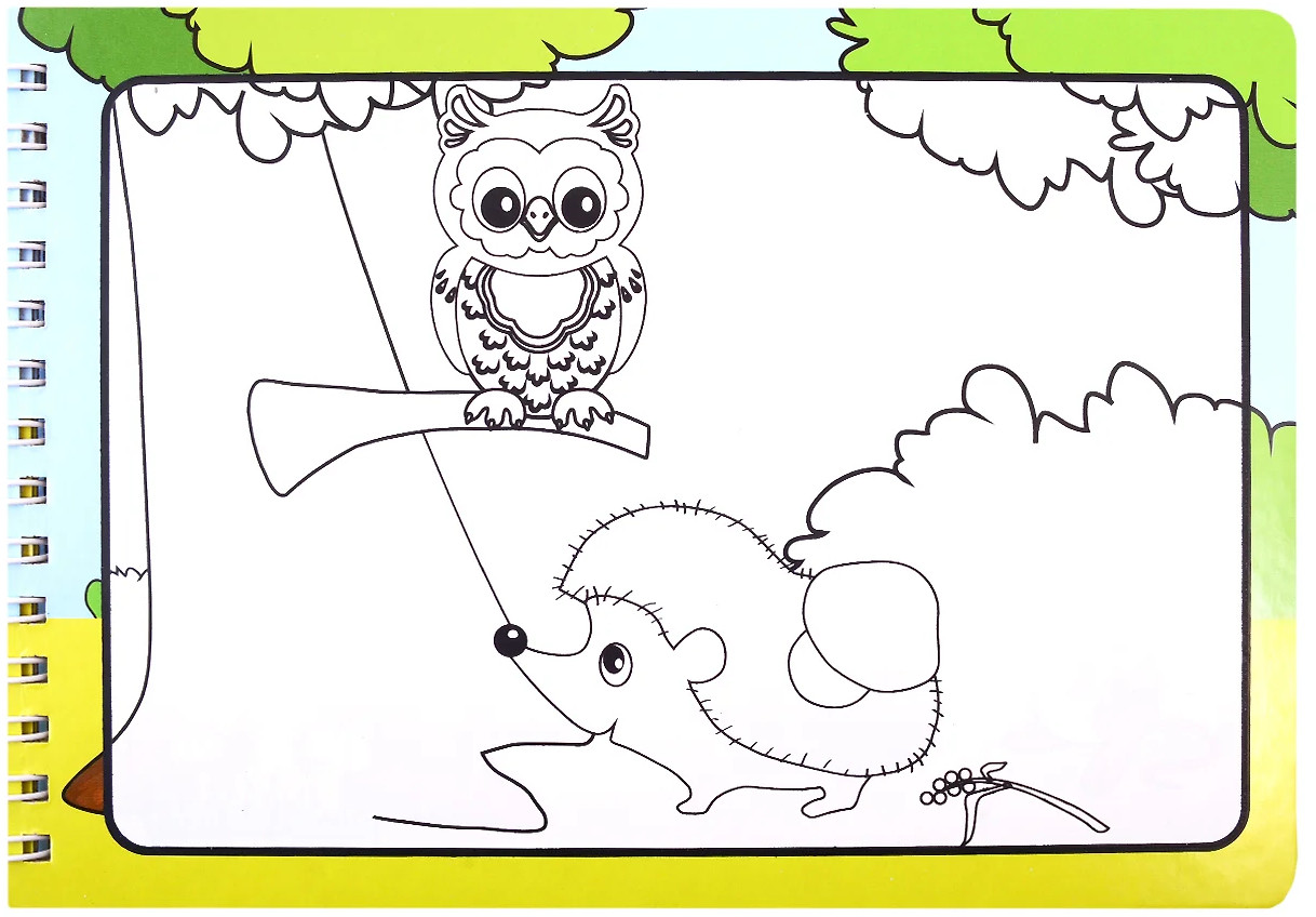 На каждом книжном развороте помимо страницы с рассказом о лесных животных, забавными иллюстрациями и несложными заданиями находится страница с картинкой-раскраской, которая волшебным образом проявляет свои яркие цвета после соприкосновения с мокрой кисточкой баллончика. Спустя некоторое время рисунки высыхают и превращаются в черно-белые изображения, которые снова можно будет раскрасить.