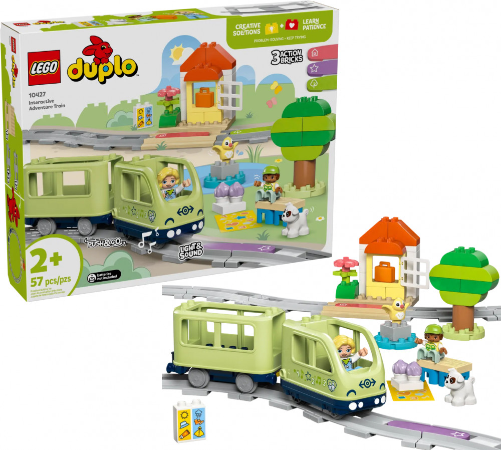 • интерактивный поезд дарит часы творческих игр для малышей от 2 лет, предлагая увлекательное обучающее путешествие с LEGO® DUPLO® Interactive Adventure Train;