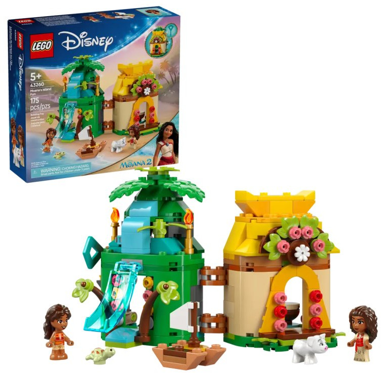 Серия: LEGO Disney Princess Фантастические приключения ждут поклонников Моаны Диснея в возрасте от 5 лет и старше в этом наборе для конструирования игрушек LEGO® Disney Moana’s Island Fun (43260). Этот сборный игровой набор с микромиром, представляющий собой двухстороннюю модель, вдохновленную фильмом Disney Moana 2, представляет собой небольшой набор с большим миром внутри. На острове есть водопадная горка со скрытым входом, а в доме есть комнаты для фигурок микрокукол Моаны и маленькой сестры Симеи LEGO Disney, а также место для Пуа. В нем есть небольшая лодка и увлекательные сюжетные элементы, а остров можно запереть ключом, что делает его идеальным для портативной игры на ходу.
