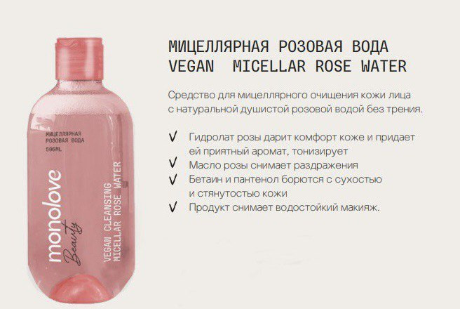 Monolove Мицеллярная вода «Vegan Micellar Rose Water»