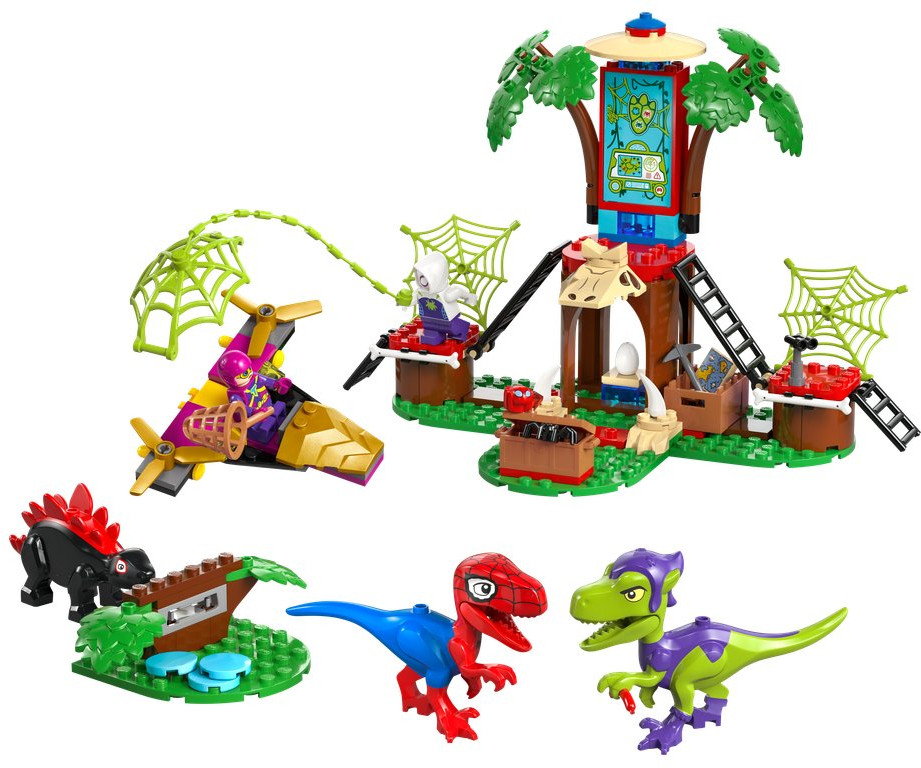 • приключения LEGO® tree house adventures — дети присоединяются к Trapster, Ghost-Spider, Gobby-Raptor, Spidey-Rex, Dino-Spin и Trace-E, чтобы повеселиться с героями, злодеями и динозаврами в домике на дереве в джунглях;