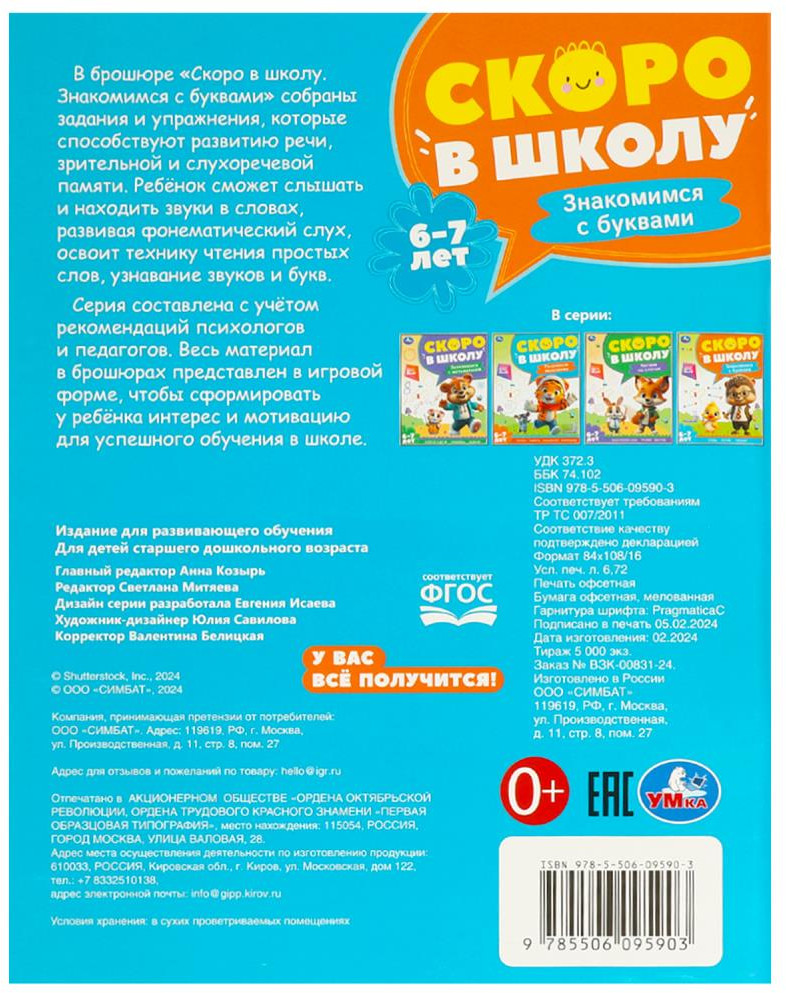 Серия книг «Скоро в школу» составлена с учётом рекомендаций психологов и педагогов. Весь материал в брошюрах представлен в игровой форме, чтобы сформировать у ребёнка интерес и мотивацию для успешного обучения в школе.
