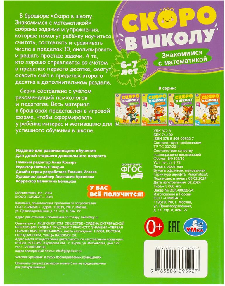 Серия книг «Скоро в школу» составлена с учётом рекомендаций психологов и педагогов. Весь материал в брошюрах представлен в игровой форме, чтобы сформировать у ребёнка интерес и мотивацию для успешного обучения в школе.