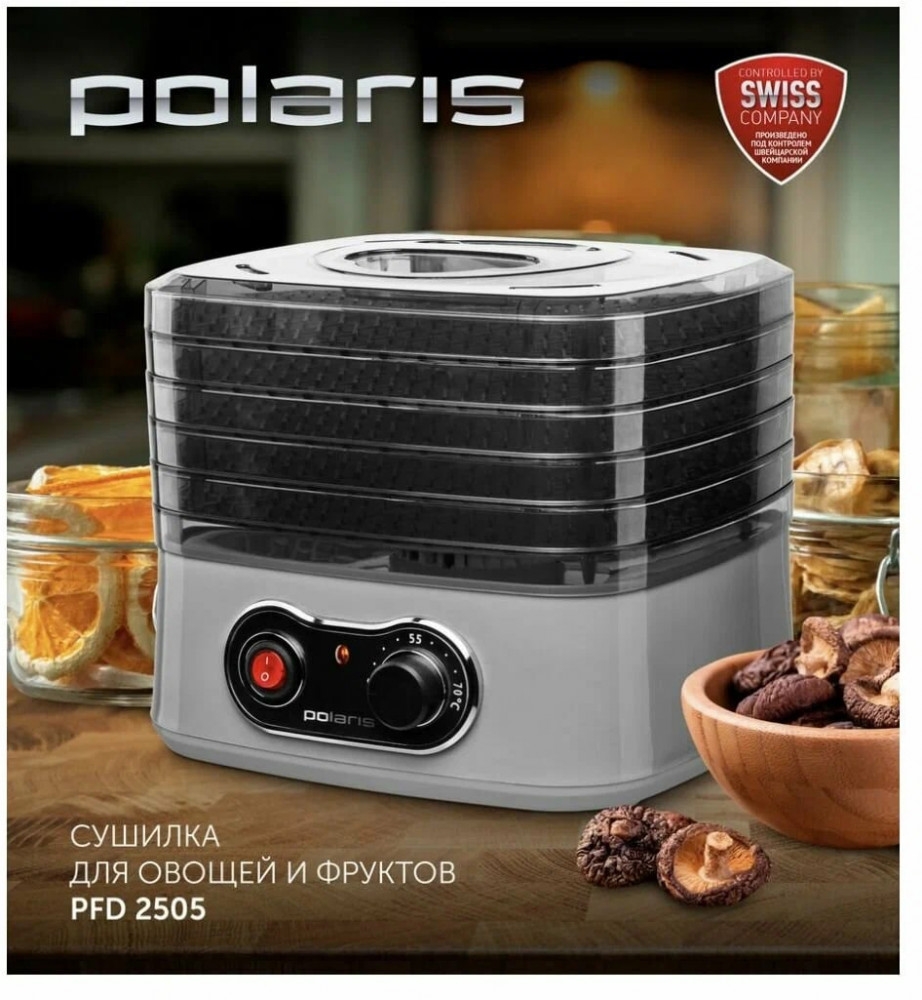 Polaris Сушилка для овощей и фруктов PFD 2505В данный момент этот товар отсутствует в продаже. Возможно, у нас найдется аналогичный или похожий товар здесь. Cушилка для овощей и фруктов Polaris PFD 2505 порадует всех приверженцев здорового образа жизни и правильного питания. Прибор имеет пять практичных секций с прозрачными стенками, благодаря которым можно контролировать процесс. Температуру в данной модели можно регулировать вручную. От перегрева устройство защищено специальной функцией. Устройство предназначено для сушки овощей и грибов, фруктов и ягод путем обезвоживания. Такой прибор позволит сделать полезную заготовку на зиму и побаловать себя натуральной пастилой, которая станет отличной заменой калорийным пирожным и тортам. Ко всему прочему такую полезную сушку с абсолютно чистым составом можно давать даже детям. Модель выдержана в стильном дизайне и универсальном цвете, поэтому органично впишется в любой интерьер и не привлечет к себе лишнего внимания. А за счет компактных размеров и небольшого веса устройство можно взять с собой на дачу. |