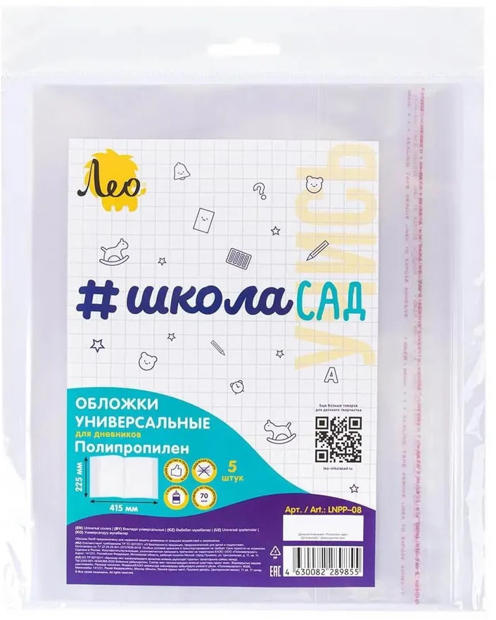 Обложки имеют глянцевую поверхность и клеевой край, что делает их удобными в использовании и обеспечивает надежную фиксацию на учебных материалах. Прозрачный цвет позволяет легко идентифицировать содержимое, сохраняя при этом стильный внешний вид.