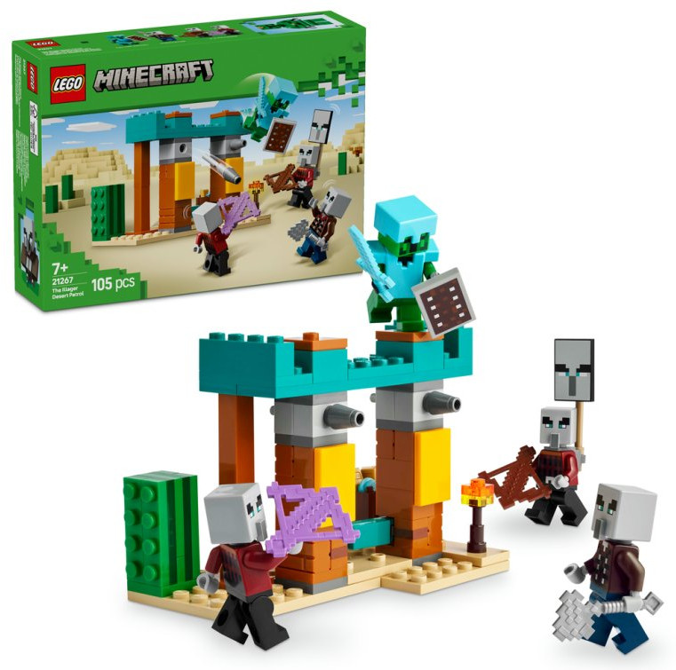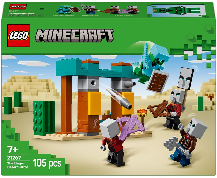 • действие в пустыне LEGO® Minecraft® — The Illager Desert Patrol — это увлекательное детское развлечение, которое оживляет популярную видеоигру для мальчиков и девочек в возрасте от 7 лет и старше;