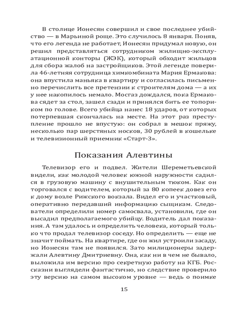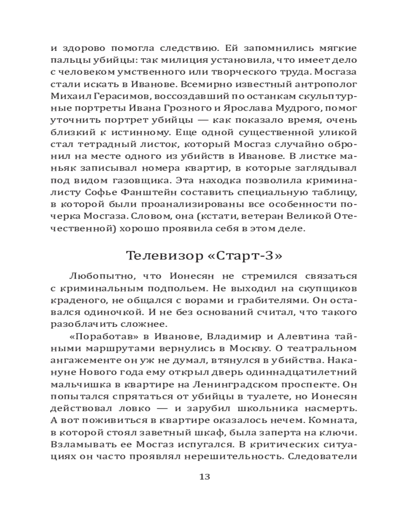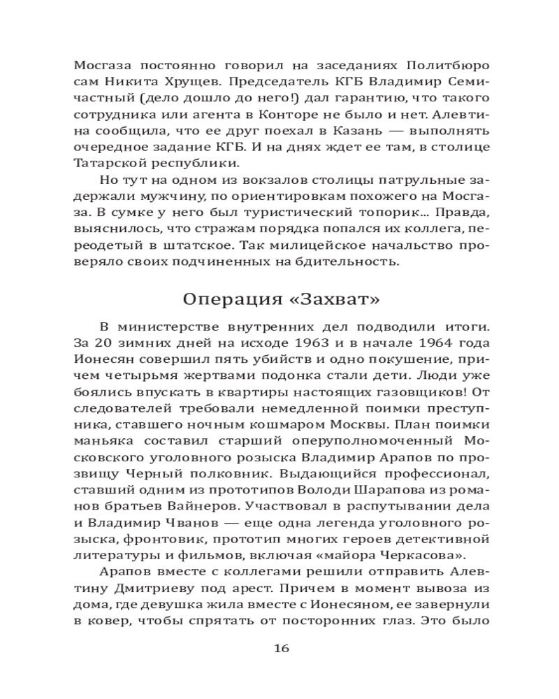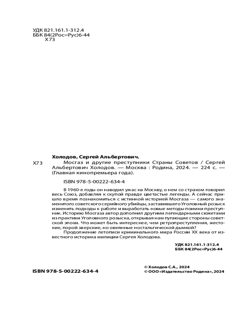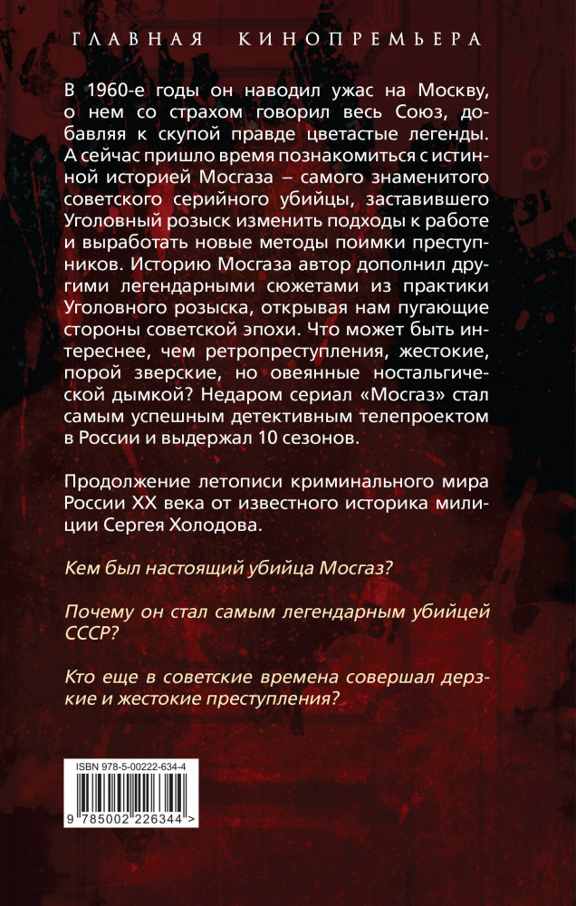 💳 Оплатить за товар можно при получении 🇰🇿 Есть бесплатная доставка по Казахстану от 1 дня 🎁 Копите бонусы с каждой покупки Серия: Главная кинопремьера года В 1960-е годы он наводил ужас на Москву, о нем со страхом говорил весь Союз, добавляя к скупой правде цветастые легенды. А сейчас пришло время познакомиться с истинной историей «Мосгаза» — самого знаменитого советского серийного убийцы, заставившего Уголовный розыск изменить подходы к работе и выработать новые методы поимки преступника. Историю «Мосгаза» автор дополнил другими легендарными сюжетами из практики Уголовного розыска, открывая нам пугающие стороны советской эпохи. Что может быть интереснее, чем ретро-преступления, жестокие, порой зверские, но овеянные ностальгической дымкой? Продолжение летописи криминального мира России XX века от известного историка милиции Сергея Холодова. |
